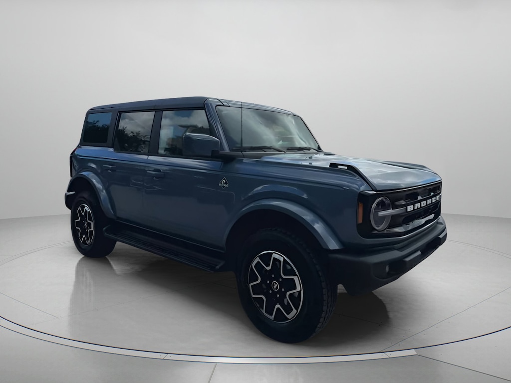 Azure Gray Metallic Tri-Coat 2025 Ford Bronco Outer Banks In-Transit 4WD 10-Speed Automatic 2.3L EcoBoost I-4 18" Bright Machined Aluminum Wheels, 3.73 Axle Ratio, 4-Wheel Disc Brakes, 7 Speakers, ABS brakes, Air Conditioning, Alloy wheels, AM/FM radio: SiriusXM with 360L, AM/FM Stereo, Auto High-beam Headlights, Auto-dimming Rear-View mirror, Automatic temperature control, Brake assist, Carbonized Gray Molded-In-Color Hard Top, Compass, Connected Navigation, Delay-off headlights, Door Storage Bags, Driver door bin, Driver vanity mirror, Dual front impact airbags, Dual front side impact airbags, Electronic Stability Control, Emergency communication system: 911 Assist, Equipment Group 312A Mid Package, Exterior Parking Camera Rear, Front anti-roll bar, Front Bucket Seats, Front Center Armrest, Front dual zone A/C, Front fog lights, Front reading lights, Front wheel independent suspension, Fully automatic headlights, Hard Top Sound Deadening Headliner, Heated door mirrors, Heated front seats, Heated Leather-Trimmed/Vinyl Bucket Seats, Heated steering wheel, Illuminated entry, Integrated roll-over protection, Leather Shift Knob, Low tire pressure warning, Navigation system: Connected Navigation, Occupant sensing airbag, Outside temperature display, Overhead airbag, Overhead console, Panic alarm, Passenger door bin, Passenger vanity mirror, Power door mirrors, Power driver seat, Power passenger seat, Power steering, Power windows, Radio data system, Rear seat center armrest, Rear-Window Defroster & Washer, Remote keyless entry, Security system, SiriusXM w/360L, Speed control, Split folding rear seat, Steering wheel mounted audio controls, SYNC 4, Tachometer, Telescoping steering wheel, Tilt steering wheel, Traction control, Trip computer, Variably intermittent wipers, Voltmeter.