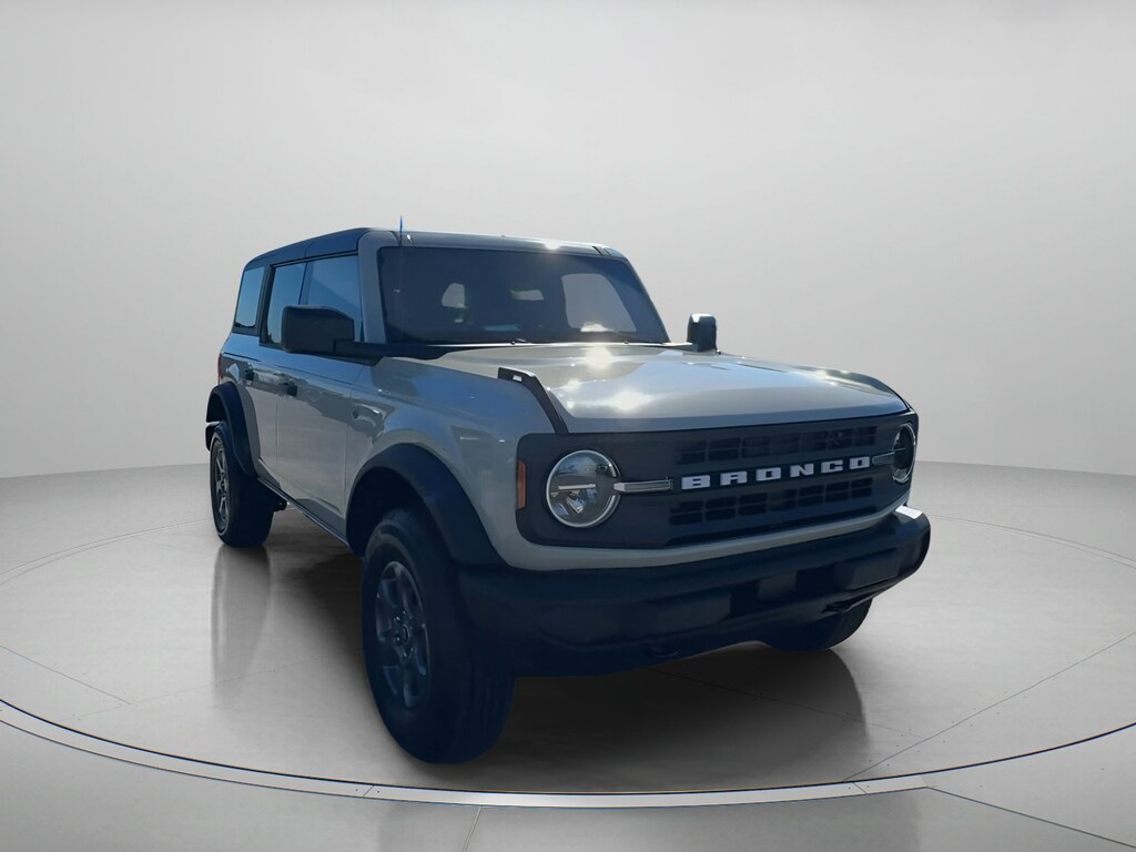 Desert Sand 2025 Ford Bronco Big Bend In-Transit 4WD 10-Speed Automatic 2.3L EcoBoost I-4 2-Door Intelligent Access w/Lock/Unlock, 4-Wheel Disc Brakes, 4.46 Axle Ratio, 7 Speakers, ABS brakes, Air Conditioning, Alloy wheels, AM/FM radio: SiriusXM with 360L, AM/FM Stereo, Ambient Footwell Lighting, Auto High-Beam Headlamps, Auto High-beam Headlights, BLIS Blind Spot Information System, Brake assist, Carbonized Gray Molded-In-Color Hard Top, Cloth Bucket Seats, Compass, Connected Navigation, Delay-off headlights, Door Storage Bags, Dr & Pass Illuminated Sliding Visor Vanity Mirrors, Driver door bin, Driver vanity mirror, Dual front impact airbags, Dual front side impact airbags, Dual Smart Charging USB Ports, Dual-Zone Electronic Automatic Temperature Control, Electronic Stability Control, Emergency communication system: 911 Assist, Equipment Group 222A Mid Package, Exterior Parking Camera Rear, Front anti-roll bar, Front Bucket Seats, Front Center Armrest, Front reading lights, Front Row Heated Seats, Front wheel independent suspension, Fully automatic headlights, Hard Top Sound Deadening Headliner, Heated door mirrors, Illuminated entry, Integrated roll-over protection, Lane-Keeping System, Leather Shift Knob, Low tire pressure warning, Occupant sensing airbag, Outside temperature display, Overhead airbag, Overhead console, Panic alarm, Passenger door bin, Passenger vanity mirror, Power door mirrors, Power Outlet - Back Side of Center Floor Console, Power steering, Power windows, Pre-Collision Assist w/Automatic Emergency Braking, Radio data system, Rear Parking Sensors, Rear-View Camera, Rear-Window Defroster & Washer, Remote keyless entry, Security system, SiriusXM w/360L, Speed control, Split folding rear seat, Steering wheel mounted audio controls, SYNC 4, Tachometer, Telescoping steering wheel, Tilt steering wheel, Traction control, Trip computer, Variably intermittent wipers, Wheels: 17" Carbonized Gray-Painted Aluminum.