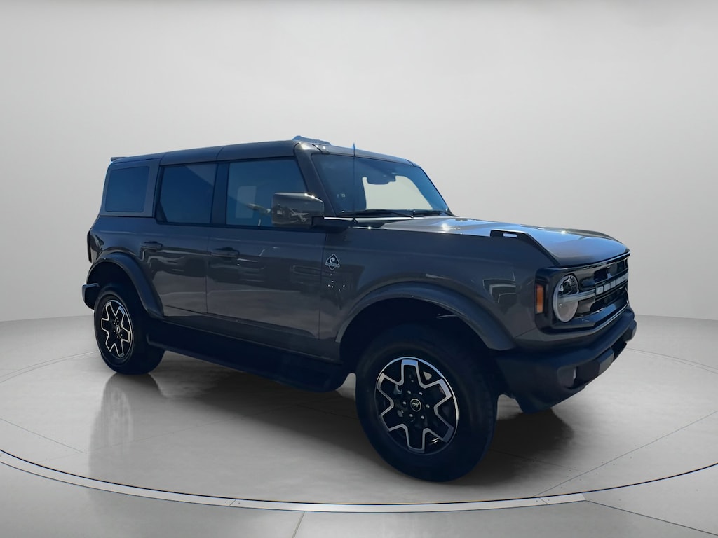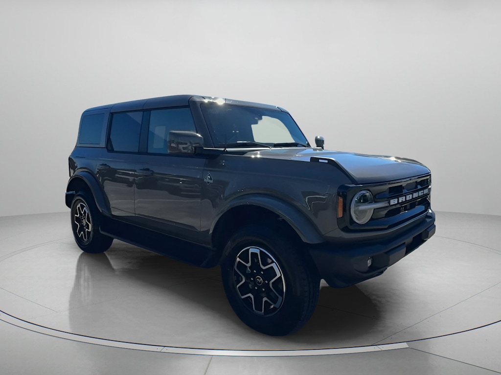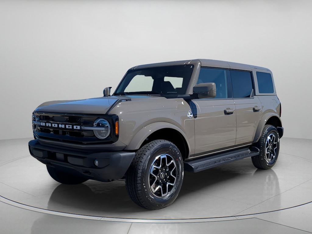 Marsh Gray 2025 Ford Bronco Outer Banks In-Transit 4WD 10-Speed Automatic 2.3L EcoBoost I-4 18" Bright Machined Aluminum Wheels, 3.73 Axle Ratio, 4-Wheel Disc Brakes, 7 Speakers, ABS brakes, Air Conditioning, Alloy wheels, AM/FM radio: SiriusXM with 360L, AM/FM Stereo, Auto High-beam Headlights, Auto-dimming Rear-View mirror, Automatic temperature control, Brake assist, Compass, Connected Navigation, Delay-off headlights, Door Storage Bags, Driver door bin, Driver vanity mirror, Dual front impact airbags, Dual front side impact airbags, Electronic Stability Control, Emergency communication system: 911 Assist, Equipment Group 312A Mid Package, Exterior Parking Camera Rear, Front anti-roll bar, Front Bucket Seats, Front Center Armrest, Front dual zone A/C, Front fog lights, Front reading lights, Front wheel independent suspension, Fully automatic headlights, Hard Top Sound Deadening Headliner, Heated door mirrors, Heated front seats, Heated Leather-Trimmed/Vinyl Bucket Seats, Heated steering wheel, Illuminated entry, Integrated roll-over protection, Leather Shift Knob, Low tire pressure warning, Navigation system: Connected Navigation, Occupant sensing airbag, Outside temperature display, Overhead airbag, Overhead console, Painted Hard Top, Panic alarm, Passenger door bin, Passenger vanity mirror, Power door mirrors, Power driver seat, Power passenger seat, Power steering, Power windows, Radio data system, Rear seat center armrest, Rear-Window Defroster & Washer, Remote keyless entry, Security system, SiriusXM w/360L, Speed control, Split folding rear seat, Steering wheel mounted audio controls, SYNC 4, Tachometer, Telescoping steering wheel, Tilt steering wheel, Traction control, Trip computer, Variably intermittent wipers, Voltmeter.