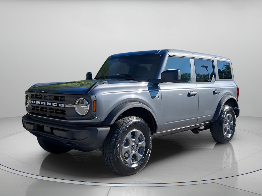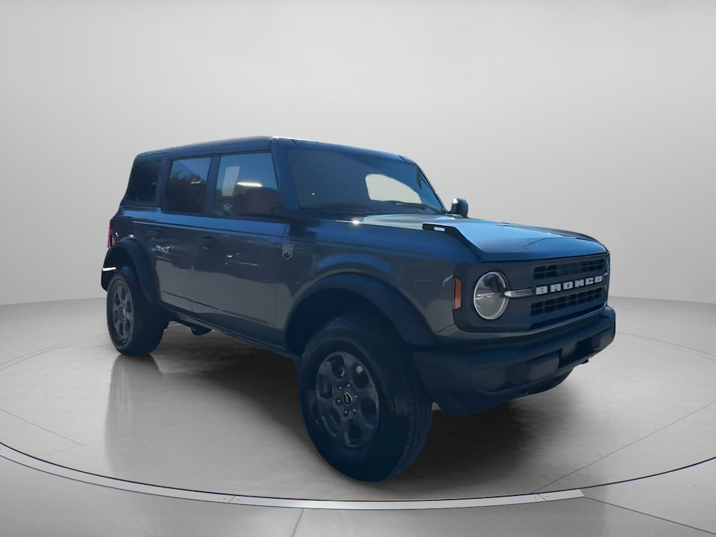 Carbonized Gray Metallic 2025 Ford Bronco Big Bend In-Transit 4WD 10-Speed Automatic 2.3L EcoBoost I-4 2-Door Intelligent Access w/Lock/Unlock, 4-Wheel Disc Brakes, 4.46 Axle Ratio, 7 Speakers, ABS brakes, Air Conditioning, Alloy wheels, AM/FM radio: SiriusXM with 360L, AM/FM Stereo, Ambient Footwell Lighting, Auto High-Beam Headlamps, Auto High-beam Headlights, BLIS Blind Spot Information System, Brake assist, Carbonized Gray Molded-In-Color Hard Top, Cloth Bucket Seats, Compass, Connected Navigation, Delay-off headlights, Door Storage Bags, Dr & Pass Illuminated Sliding Visor Vanity Mirrors, Driver door bin, Driver vanity mirror, Dual front impact airbags, Dual front side impact airbags, Dual Smart Charging USB Ports, Dual-Zone Electronic Automatic Temperature Control, Electronic Stability Control, Emergency communication system: 911 Assist, Equipment Group 222A Mid Package, Exterior Parking Camera Rear, Front anti-roll bar, Front Bucket Seats, Front Center Armrest, Front reading lights, Front Row Heated Seats, Front wheel independent suspension, Fully automatic headlights, Heated door mirrors, Illuminated entry, Integrated roll-over protection, Lane-Keeping System, Leather Shift Knob, Low tire pressure warning, Occupant sensing airbag, Outside temperature display, Overhead airbag, Overhead console, Panic alarm, Passenger door bin, Passenger vanity mirror, Power door mirrors, Power Outlet - Back Side of Center Floor Console, Power steering, Power windows, Pre-Collision Assist w/Automatic Emergency Braking, Radio data system, Rear Parking Sensors, Rear-View Camera, Rear-Window Defroster & Washer, Remote keyless entry, Security system, SiriusXM w/360L, Speed control, Split folding rear seat, Steering wheel mounted audio controls, SYNC 4, Tachometer, Telescoping steering wheel, Tilt steering wheel, Traction control, Trip computer, Variably intermittent wipers, Wheels: 17" Carbonized Gray-Painted Aluminum.