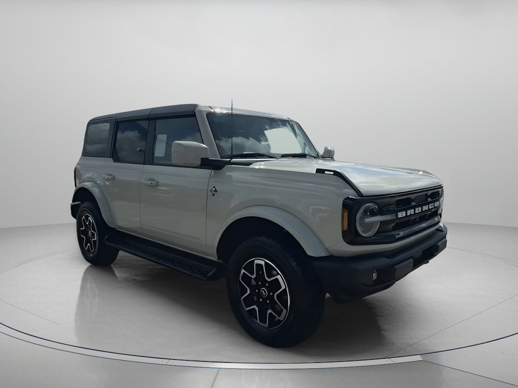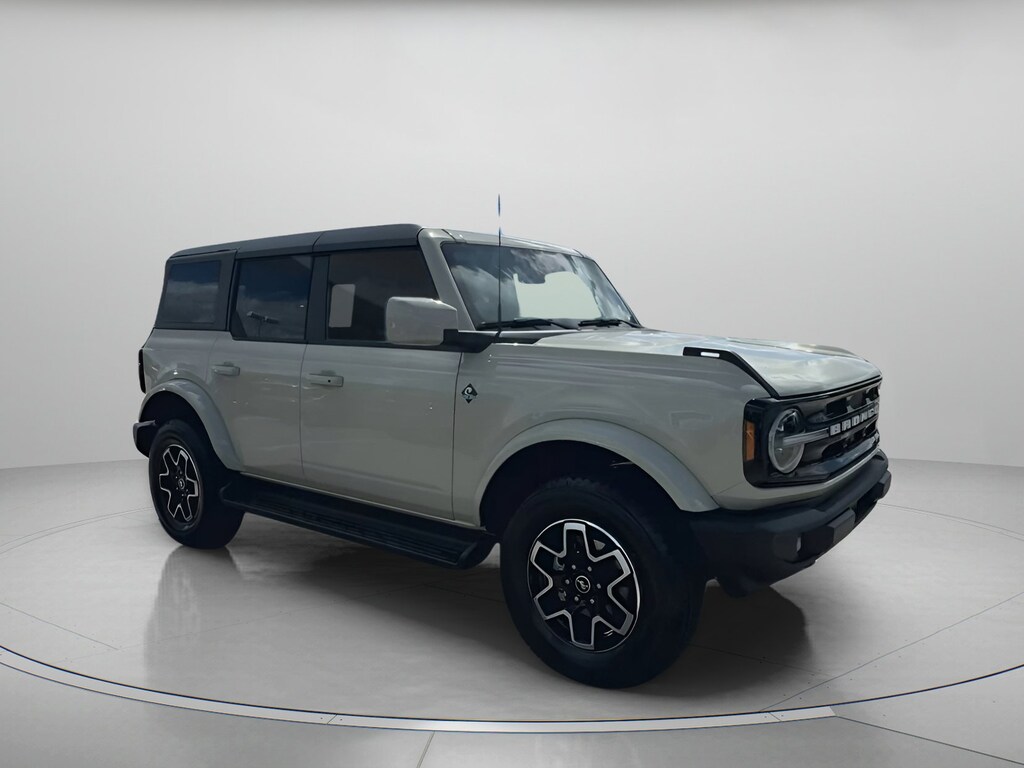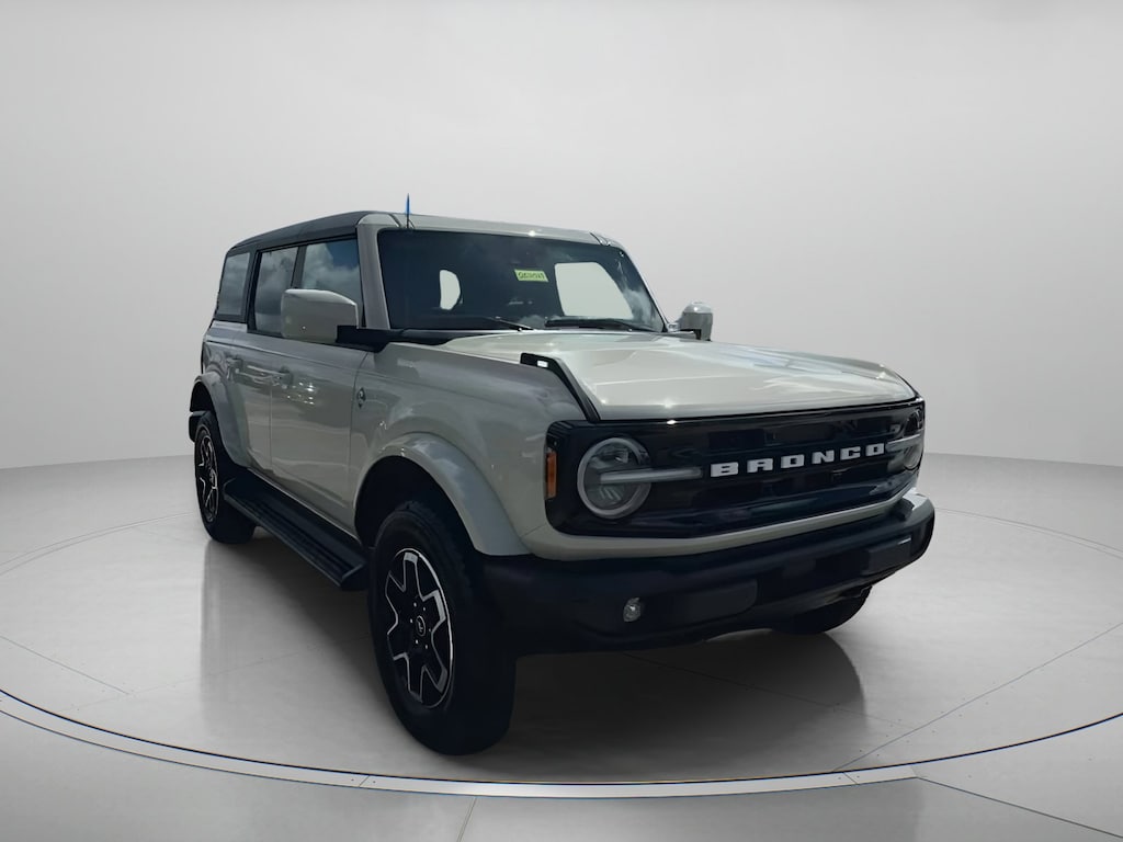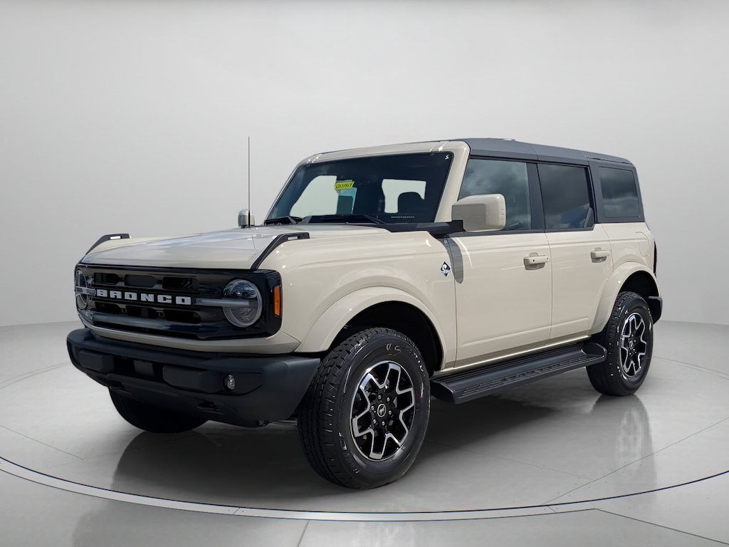 Desert Sand 2025 Ford Bronco Outer Banks In-Transit 4WD 10-Speed Automatic 2.3L EcoBoost I-4 18" Bright Machined Aluminum Wheels, 3.73 Axle Ratio, 4-Wheel Disc Brakes, 7 Speakers, ABS brakes, Air Conditioning, Alloy wheels, AM/FM radio: SiriusXM with 360L, AM/FM Stereo, Auto High-beam Headlights, Auto-dimming Rear-View mirror, Automatic temperature control, Brake assist, Carbonized Gray Molded-In-Color Hard Top, Compass, Connected Navigation, Delay-off headlights, Driver door bin, Driver vanity mirror, Dual front impact airbags, Dual front side impact airbags, Electronic Stability Control, Emergency communication system: 911 Assist, Equipment Group 312A Mid Package, Exterior Parking Camera Rear, Front anti-roll bar, Front Bucket Seats, Front Center Armrest, Front dual zone A/C, Front fog lights, Front reading lights, Front wheel independent suspension, Fully automatic headlights, Hard Top Sound Deadening Headliner, Heated door mirrors, Heated front seats, Heated Leather-Trimmed/Vinyl Bucket Seats, Heated steering wheel, Illuminated entry, Integrated roll-over protection, Leather Shift Knob, Low tire pressure warning, Navigation system: Connected Navigation, Occupant sensing airbag, Outside temperature display, Overhead airbag, Overhead console, Panic alarm, Passenger door bin, Passenger vanity mirror, Power door mirrors, Power driver seat, Power passenger seat, Power steering, Power windows, Radio data system, Rear seat center armrest, Rear-Window Defroster & Washer, Remote keyless entry, Security system, SiriusXM w/360L, Speed control, Split folding rear seat, Steering wheel mounted audio controls, SYNC 4, Tachometer, Telescoping steering wheel, Tilt steering wheel, Traction control, Trip computer, Variably intermittent wipers, Voltmeter.