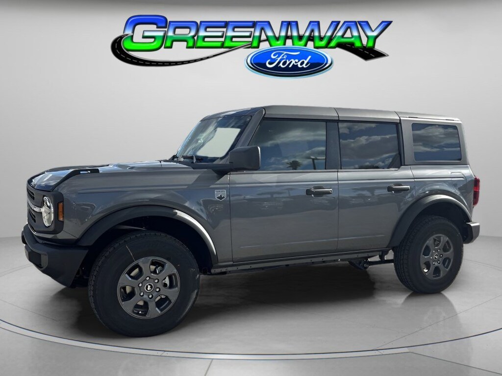 Our 2025 Ford Bronco Big Bend 4 Door 4X4 helps get adventures off to a great start in Carbonized Gray Metallic! Powered by a TurboCharged 2.3 Liter EcoBoost 4 Cylinder supplying 300hp to a 10 Speed Automatic transmission with multiple terrain modes. This Four Wheel Drive SUV also handles with calm composure on the street or off thanks to a HOSS 1.0 suspension, and it scores nearly 21mpg on the highway with an unmistakable design. Bold Bronco details include LED lighting, alloy wheels, tow hooks, heated power mirrors, a removable top/doors, and a convenient swing-out tailgate for carrying cargo.