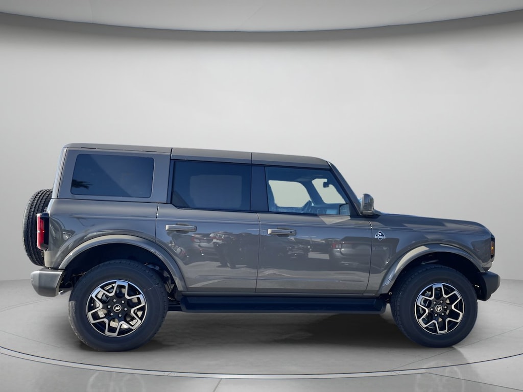 Rugged and appealing, our 2025 Ford Bronco Outer Banks 4 Door 4X4 inspires you to ride the trails with style in Cactus Gray! Motivated by a TurboCharged 2.3 Liter EcoBoost 4 Cylinder delivering 300hp to a 10 Speed Automatic transmission with terrain management. Also featuring a high-performance off-road suspension, this Four Wheel Drive SUV is a fierce adventure machine that runs free off the pavement and sees nearly 21mpg on the highway. Deluxe details like signature LED lighting, powder-coated tube steps, body-color fender flares, alloy wheels, and a removable top and doors help our Bronco make a bold impression.