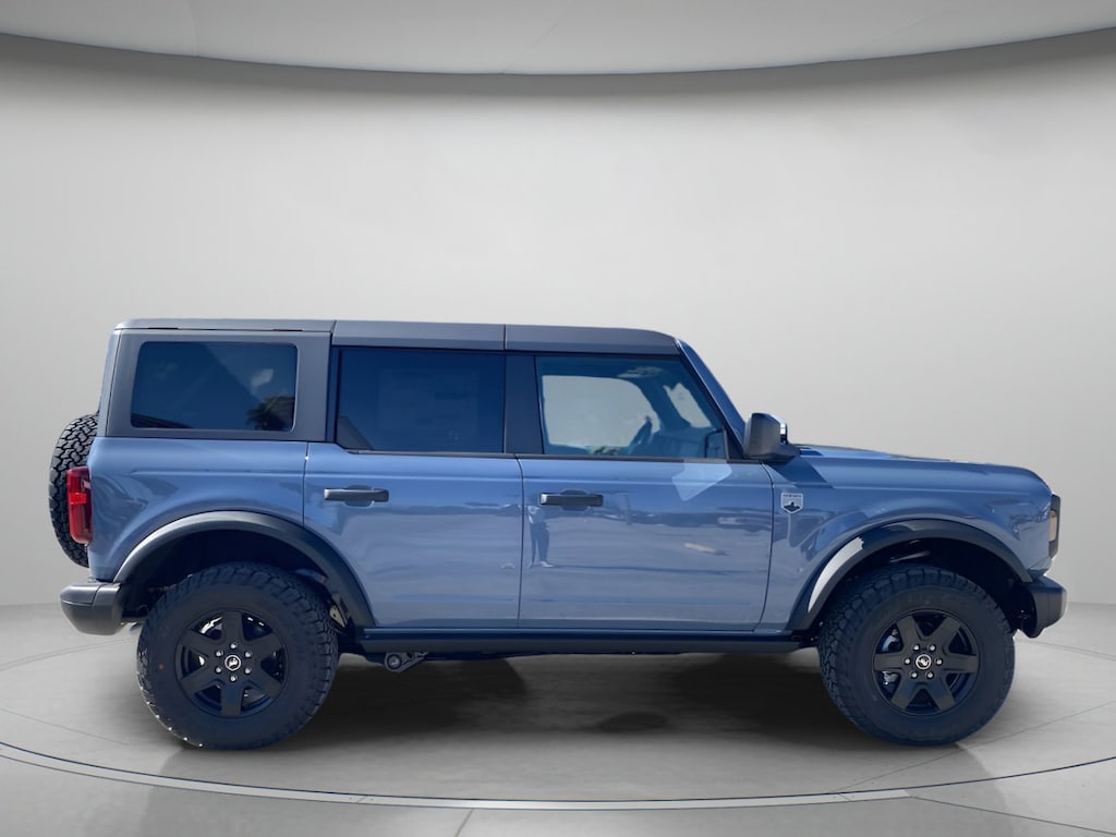 Our 2025 Ford Bronco Big Bend 4 Door 4X4 with the Black Diamond Pack helps get adventures off to a great start in Azure Gray Metallic Tri-Coat! Powered by a TurboCharged 2.3 Liter EcoBoost 4 Cylinder supplying 300hp to a 10 Speed Automatic transmission. This Four Wheel Drive SUV also sees nearly 18mpg on the highway while rocking our Black Diamond Pack. It adds an advanced 4X4 system, powder-coated steel bumpers, rock rails, steel bash plates, fog lamps, gloss-black wheels, and a locking rear axle to LED lighting, tow hooks, heated power mirrors, swing-out tailgate, and removable top/doors for open-air thrills.