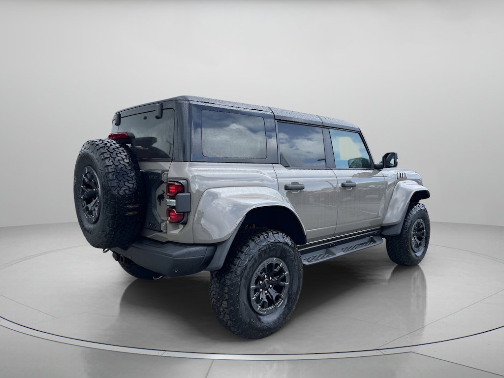 Break free from the ordinary in our 2025 Ford Bronco Raptor 4 Door 4X4 with the Black Appearance Pack, which turns heads from trail to town in Harbor Gray! Powered by a Twin-TurboCharged 3.0 Liter EcoBoost V6 serving up 418hp to a 10 Speed Automatic transmission for off-road awesomeness. This Four Wheel Drive SUV easily dominates difficult terrain with a HOSS 4.0 suspension, Trail Control, and electronic locking axles, and it returns nearly 16mpg on the highway. Fully equipped for fierce style, our Bronco boasts LED lighting, robust bash plates, a modular front bumper w/Rigid off-road lighting, a removable top/doors, Raptor bodywork, and our Appearance Pack for a matte-black hood graphic and beadlock-capable alloy wheels.