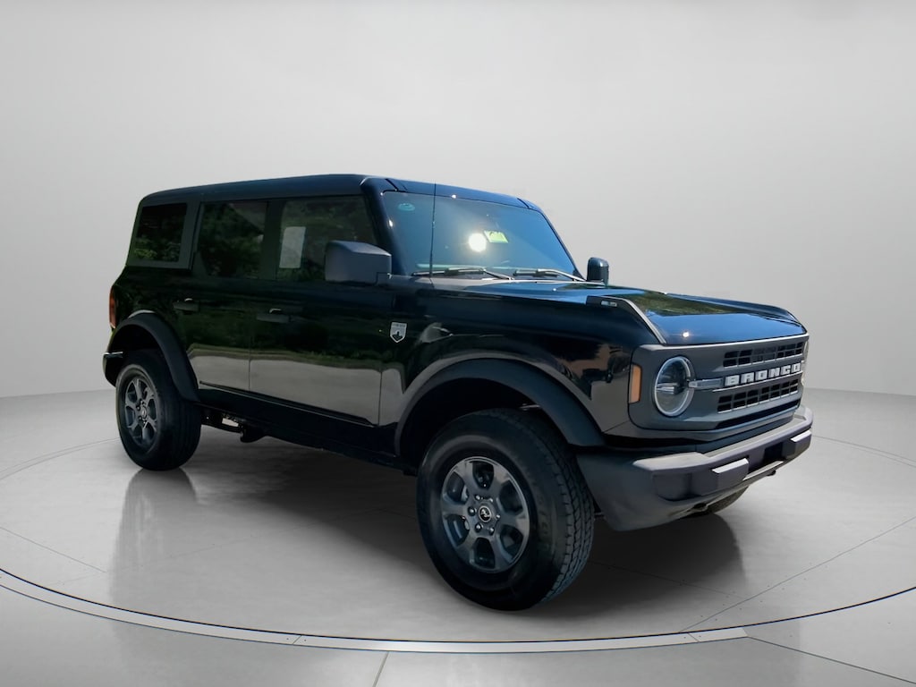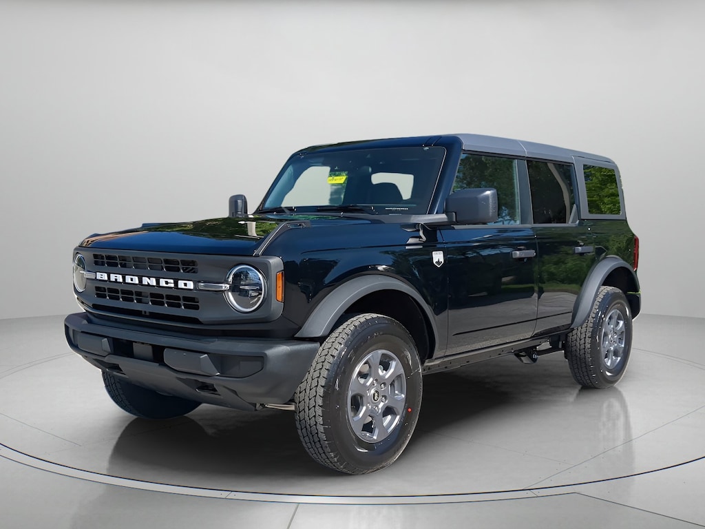 Shadow Black 2025 Ford Bronco Big Bend On-Order 4WD 10-Speed Automatic 2.3L EcoBoost I-4 4-Wheel Disc Brakes, 4.46 Axle Ratio, 7 Speakers, ABS brakes, Air Conditioning, Alloy wheels, AM/FM radio: SiriusXM with 360L, AM/FM Stereo, Auto High-beam Headlights, Automatic temperature control, Brake assist, Carbonized Gray Molded-In-Color Hard Top, Cloth Bucket Seats, Compass, Connected Navigation, Delay-off headlights, Driver door bin, Driver vanity mirror, Dual front impact airbags, Dual front side impact airbags, Electronic Stability Control, Emergency communication system: 911 Assist, Equipment Group 222A Mid Package, Exterior Parking Camera Rear, Front anti-roll bar, Front Bucket Seats, Front Center Armrest, Front dual zone A/C, Front reading lights, Front wheel independent suspension, Fully automatic headlights, Hard Top Sound Deadening Headliner, Heated door mirrors, Heated front seats, Illuminated entry, Integrated roll-over protection, Leather Shift Knob, Low tire pressure warning, Navigation system: Connected Navigation, Occupant sensing airbag, Outside temperature display, Overhead airbag, Overhead console, Panic alarm, Passenger door bin, Passenger vanity mirror, Power door mirrors, Power steering, Power windows, Radio data system, Rear-Window Defroster & Washer, Remote keyless entry, Security system, SiriusXM w/360L, Speed control, Split folding rear seat, Steering wheel mounted audio controls, SYNC 4, Tachometer, Telescoping steering wheel, Tilt steering wheel, Traction control, Trip computer, Variably intermittent wipers, Wheels: 17" Carbonized Gray-Painted Aluminum.