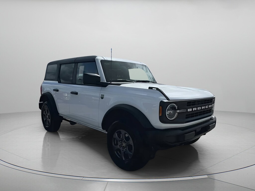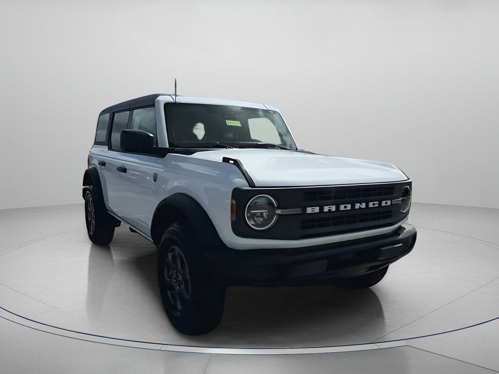 Oxford White 2025 Ford Bronco Big Bend On-Order 4WD 10-Speed Automatic 2.3L EcoBoost I-4 4-Wheel Disc Brakes, 4.46 Axle Ratio, 7 Speakers, ABS brakes, Air Conditioning, Alloy wheels, AM/FM radio: SiriusXM with 360L, AM/FM Stereo, Auto High-beam Headlights, Automatic temperature control, Brake assist, Carbonized Gray Molded-In-Color Hard Top, Cloth Bucket Seats, Compass, Connected Navigation, Delay-off headlights, Driver door bin, Driver vanity mirror, Dual front impact airbags, Dual front side impact airbags, Electronic Stability Control, Emergency communication system: 911 Assist, Equipment Group 222A Mid Package, Exterior Parking Camera Rear, Front anti-roll bar, Front Bucket Seats, Front Center Armrest, Front dual zone A/C, Front reading lights, Front wheel independent suspension, Fully automatic headlights, Hard Top Sound Deadening Headliner, Heated door mirrors, Heated front seats, Illuminated entry, Integrated roll-over protection, Leather Shift Knob, Low tire pressure warning, Navigation system: Connected Navigation, Occupant sensing airbag, Outside temperature display, Overhead airbag, Overhead console, Panic alarm, Passenger door bin, Passenger vanity mirror, Power door mirrors, Power steering, Power windows, Radio data system, Rear-Window Defroster & Washer, Remote keyless entry, Security system, SiriusXM w/360L, Speed control, Split folding rear seat, Steering wheel mounted audio controls, SYNC 4, Tachometer, Telescoping steering wheel, Tilt steering wheel, Traction control, Trip computer, Variably intermittent wipers, Wheels: 17" Carbonized Gray-Painted Aluminum.