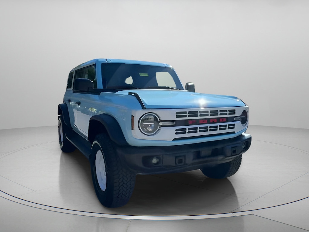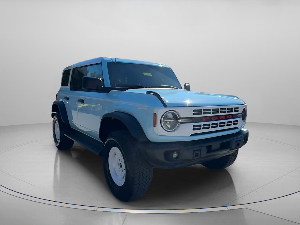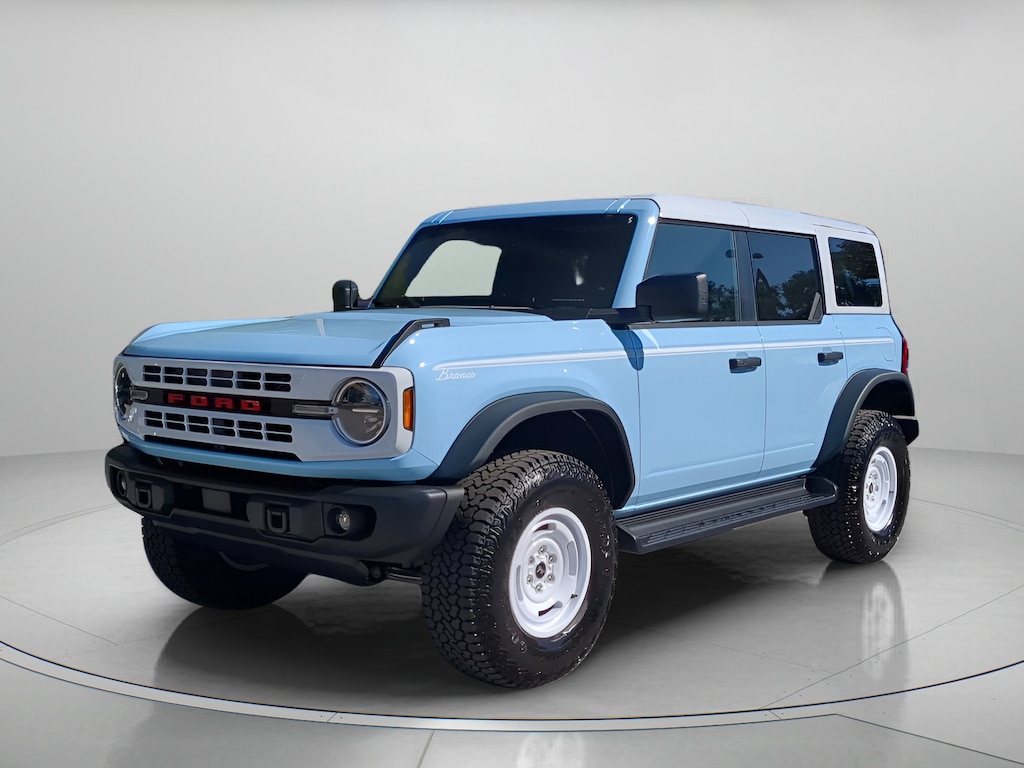 Robins Egg Blue 2025 Ford Bronco Heritage Edition On-Order 4WD 7-Speed Manual 2.7L EcoBoost V6 4-Wheel Disc Brakes, 7 Speakers, ABS brakes, Air Conditioning, Alloy wheels, AM/FM radio: SiriusXM with 360L, AM/FM Stereo, Auto High-beam Headlights, Auto-dimming Rear-View mirror, Automatic temperature control, Brake assist, Compass, Connected Navigation, Convertible HardTop, Convertible roof lining, Delay-off headlights, Driver door bin, Driver vanity mirror, Dual front impact airbags, Dual front side impact airbags, Electronic Stability Control, Emergency communication system: 911 Assist, Equipment Group 662A Mid Package, Exterior Parking Camera Rear, Front anti-roll bar, Front Bucket Seats, Front Center Armrest, Front dual zone A/C, Front fog lights, Front reading lights, Front wheel independent suspension, Fully automatic headlights, Glass rear window, Heated door mirrors, Heated front seats, Heated steering wheel, Illuminated entry, Integrated roll-over protection, Leather Shift Knob, Low tire pressure warning, Navigation system: Connected Navigation, Occupant sensing airbag, Outside temperature display, Overhead airbag, Overhead console, Panic alarm, Passenger door bin, Passenger vanity mirror, Plaid Cloth Front Heated Bucket Seats, Power door mirrors, Power steering, Power windows, Radio data system, Rear window defroster, Rear window wiper, Remote keyless entry, Security system, SiriusXM w/360L, Speed control, Split folding rear seat, Steering wheel mounted audio controls, SYNC 4, Tachometer, Telescoping steering wheel, Tilt steering wheel, Traction control, Trip computer, Variably intermittent wipers, Wheels: 17" Unique White.