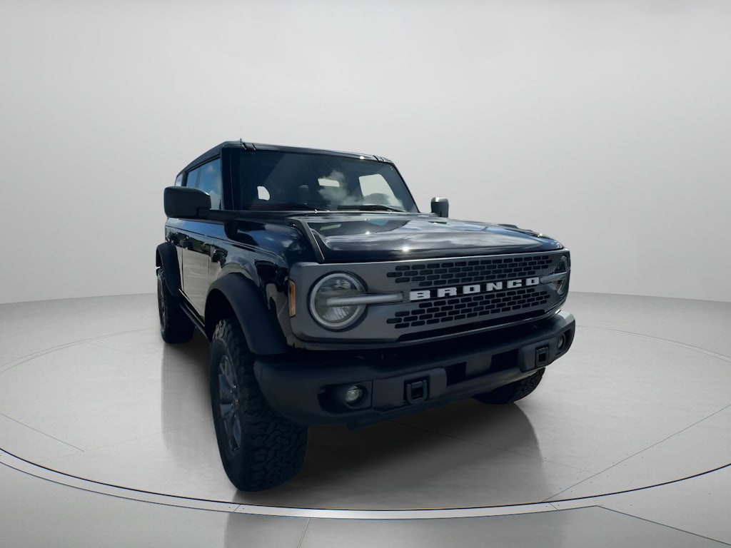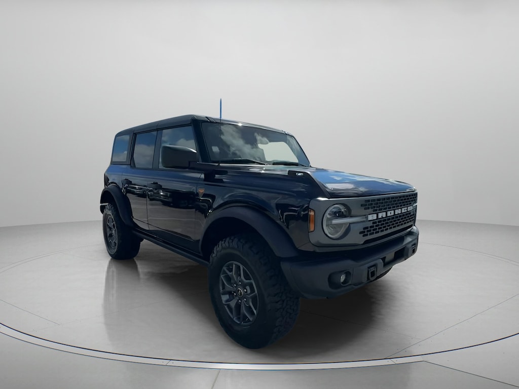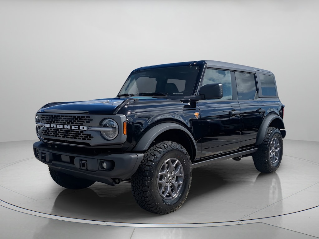 Shadow Black 2025 Ford Bronco Badlands On-Order 4WD 7-Speed Manual 2.7L EcoBoost V6 4-Wheel Disc Brakes, 4.7 Axle Ratio, 7 Speakers, ABS brakes, Air Conditioning, Alloy wheels, AM/FM radio: SiriusXM with 360L, AM/FM Stereo, Auto High-beam Headlights, Auto-dimming Rear-View mirror, Automatic temperature control, Brake assist, Carbonized Gray Molded-In-Color Hard Top, Compass, Connected Navigation, Delay-off headlights, Driver door bin, Driver vanity mirror, Dual front impact airbags, Dual front side impact airbags, Electronic Stability Control, Emergency communication system: 911 Assist, Equipment Group 332A Mid Package, Exterior Parking Camera Rear, Front anti-roll bar, Front Bucket Seats, Front Center Armrest, Front dual zone A/C, Front fog lights, Front reading lights, Front wheel independent suspension, Fully automatic headlights, Hard Top Sound Deadening Headliner, Heated door mirrors, Heated front seats, Heated steering wheel, Illuminated entry, Integrated roll-over protection, Leather Shift Knob, Low tire pressure warning, Marine Grade Vinyl Heated Bucket Seats, Navigation system: Connected Navigation, Occupant sensing airbag, Outside temperature display, Overhead airbag, Overhead console, Panic alarm, Passenger door bin, Passenger vanity mirror, Power door mirrors, Power steering, Power windows, Radio data system, Rear-Window Defroster & Washer, Remote keyless entry, Security system, SiriusXM w/360L, Speed control, Split folding rear seat, Steering wheel mounted audio controls, SYNC 4, Tachometer, Telescoping steering wheel, Tilt steering wheel, Traction control, Trip computer, Variably intermittent wipers, Voltmeter, Wheels: 17" Machined Carbonized Aluminum.