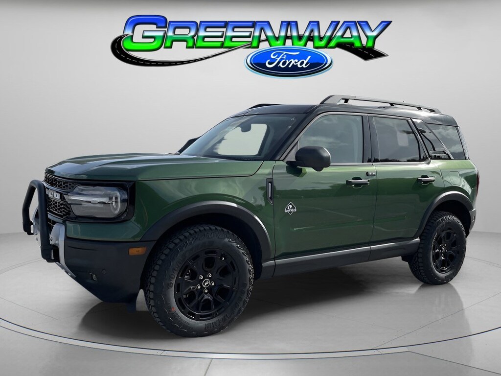 Our impressive 2025 Ford Bronco Sport Outer Banks 4X4 is equipped for epic adventures with the Sasquatch Pack in Eruption Green Metallic! Motivated by a TurboCharged 1.5 Liter EcoBoost 3 Cylinder supplying 181hp to an 8 Speed Automatic transmission for real-world capability. This Four Wheel Drive SUV also adds our Sasquatch Pack for off-road action with a HOSS 2.0 suspension and Trail Control, and it returns nearly 28mpg on the highway. Rugged and distinctive, our Bronco Sport looks good on the road or off with a stylish Shadow Black roof, LED lighting, and package upgrades like steel bumpers, underbody skid plates, recovery hooks, a brush guard, and black alloy wheels.
