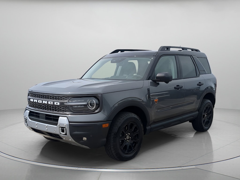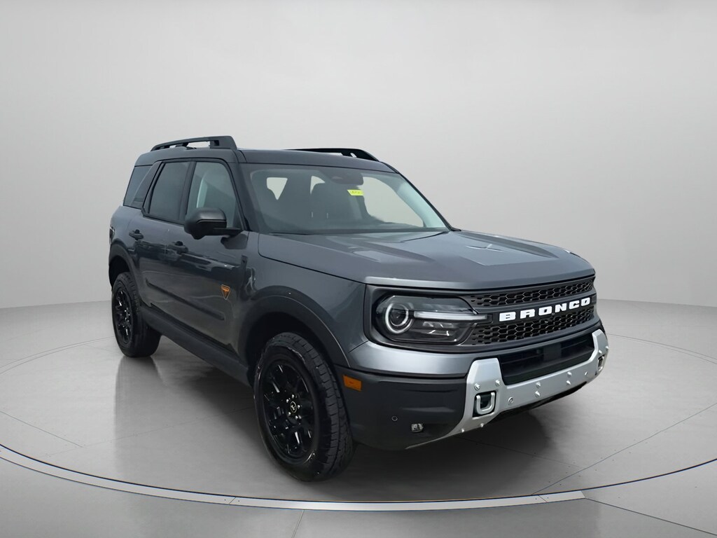 Carbonized Gray Metallic 2025 Ford Bronco Sport Badlands On-Order 4WD 8-Speed Automatic EcoBoost 2.0L I4 GTDi DOHC Turbocharged VCT 4-Wheel Disc Brakes, 6 Speakers, ABS brakes, Air Conditioning, Alloy wheels, AM/FM radio: SiriusXM, AM/FM Stereo, Auto High-beam Headlights, Auto-dimming Rear-View mirror, Automatic temperature control, B&O Sound System by Bang & Olufsen, Badlands Tech Package, Brake assist, Compass, Connected Navigation, Delay-off headlights, Driver door bin, Driver vanity mirror, Dual front impact airbags, Dual front side impact airbags, Electronic Stability Control, Emergency communication system: SYNC 4 911 Assist, Equipment Group 400A, Four wheel independent suspension, Front anti-roll bar, Front Bucket Seats, Front Center Armrest, Front fog lights, Front reading lights, Fully automatic headlights, Garage door transmitter, HD Radio, Heated door mirrors, Heated front seats, Heated steering wheel, Illuminated entry, Knee airbag, Leather Trimmed Front Bucket Seats, Low tire pressure warning, Memory seat, Occupant sensing airbag, Outside temperature display, Overhead airbag, Overhead console, Panic alarm, Passenger door bin, Passenger vanity mirror, Power door mirrors, Power driver seat, Power Moonroof, Power passenger seat, Power steering, Power windows, Radio data system, Rear anti-roll bar, Rear reading lights, Rear seat center armrest, Rear window defroster, Rear window wiper, Remote keyless entry, Security system, SiriusXM, Speed control, Speed-sensing steering, Speed-Sensitive Wipers, Split folding rear seat, Steering wheel mounted audio controls, SYNC 4 w/Enhanced Voice Recognition, Tachometer, Telescoping steering wheel, Tilt steering wheel, Traction control, Trip computer, Variably intermittent wipers, Wheels: 17" Matte Black-Painted Aluminum.
