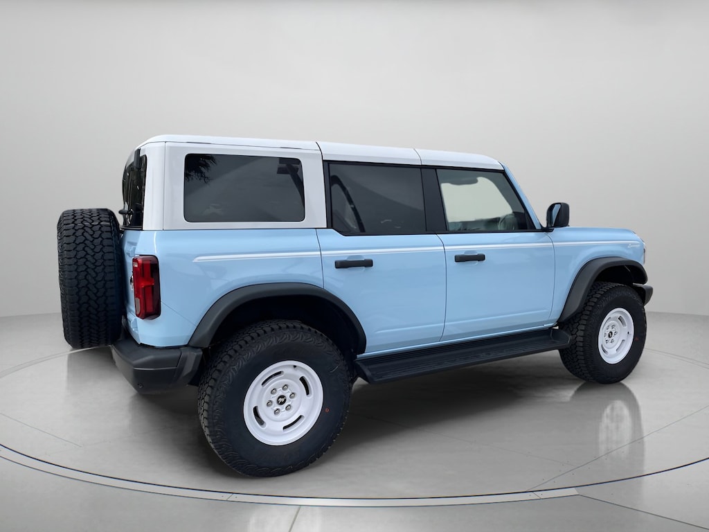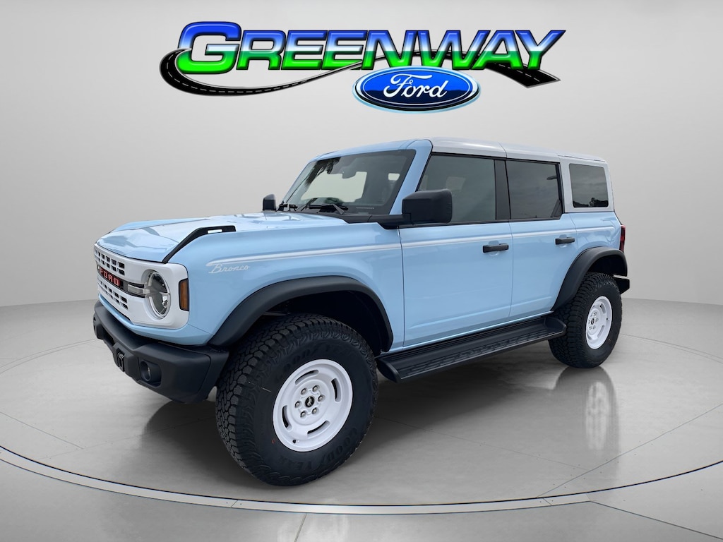 Ready to dominate any path, our 2025 Ford Bronco Heritage Edition 4 Door 4X4 pairs a bold aesthetic with advanced off-road systems for an exhilarating drive in Robin's Egg Blue! Motivated by a TurboCharged 2.7 Liter EcoBoost V6 delivering 330hp to a 10 Speed Automatic transmission. An advanced 4X4 system, electronic locking axles, and an off-road HOSS suspension supply impressive tools for the trail, and this Four Wheel Drive SUV sees nearly 21mpg on the highway. Old-school details like a white-painted roof, a white-letter grille, white alloy wheels, powder-coated tube steps, Heritage graphics, and bolt-on fender flares bring out the bold side of our Bronco.