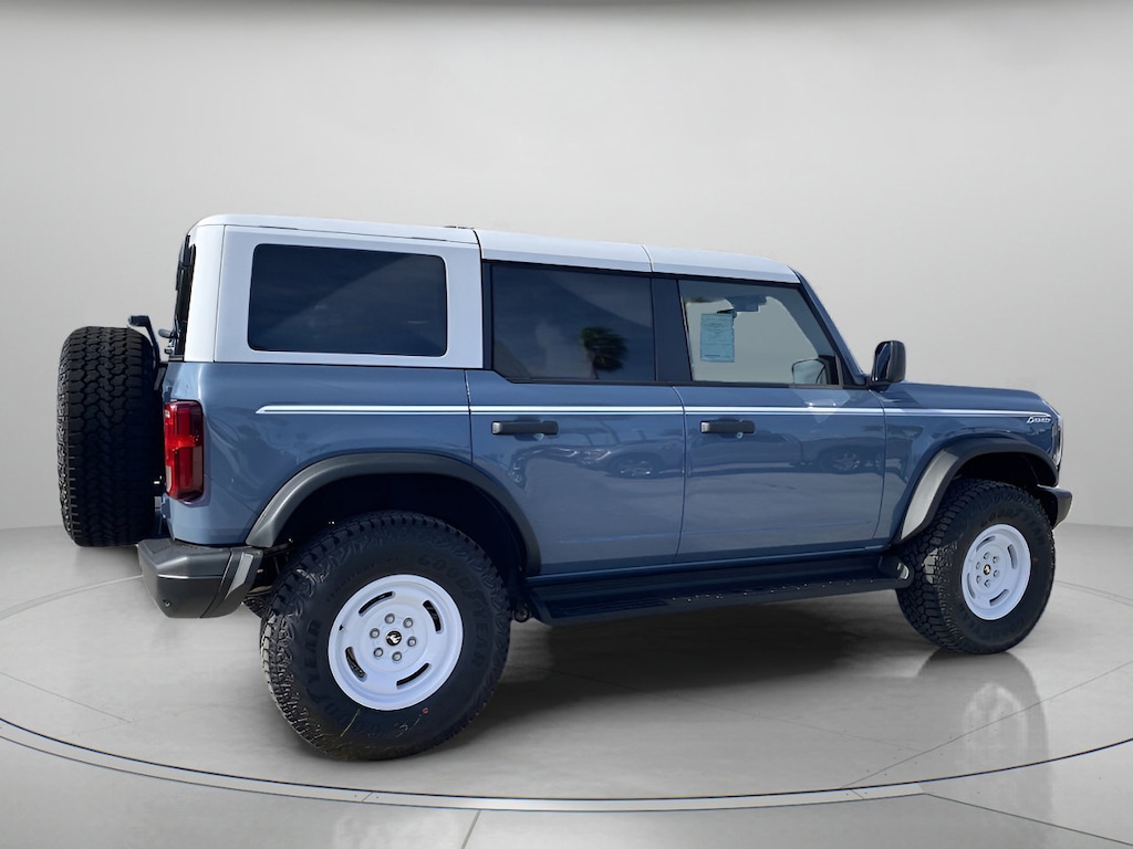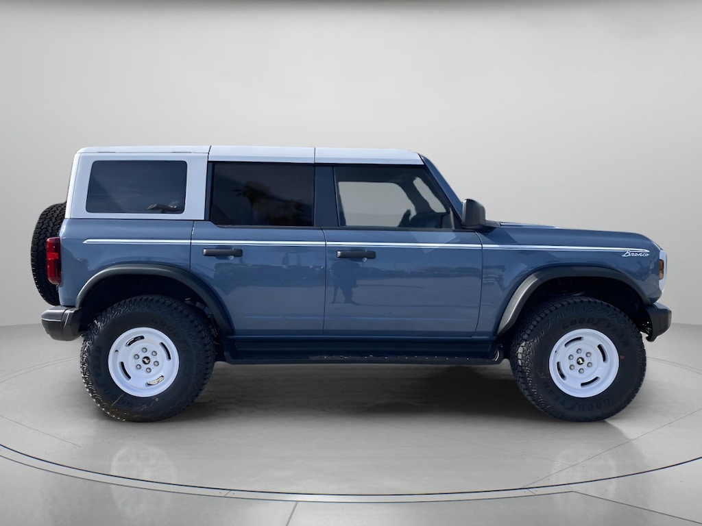 A master of modern capability, our 2025 Ford Bronco Heritage Edition 4 Door 4X4 rocks a retro Azure Gray Metallic Tri-Coat design owners love! Motivated by a TurboCharged 2.7 Liter EcoBoost V6 delivering 330hp to a 10 Speed Automatic transmission. An advanced 4X4 system, electronic locking axles, and an off-road HOSS suspension supply impressive tools for the trail, and this Four Wheel Drive SUV sees nearly 21mpg on the highway. Old-school details like a white-painted roof, a white-letter grille, white alloy wheels, powder-coated tube steps, Heritage graphics, and bolt-on fender flares bring out the bold side of our Bronco.