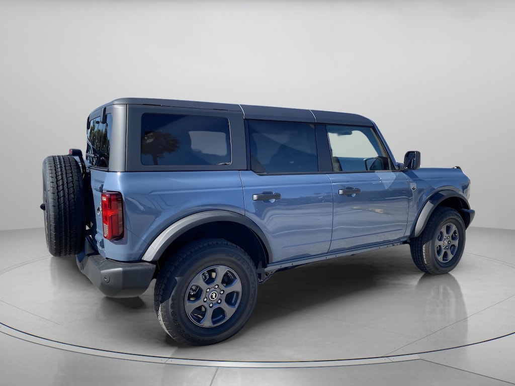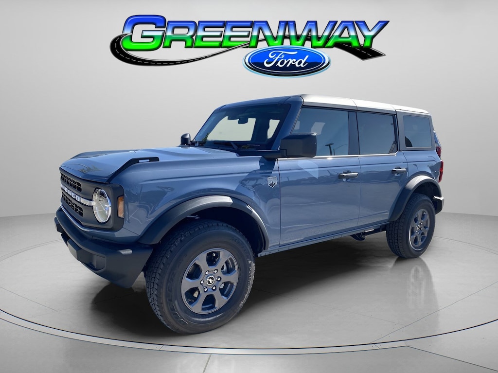 Take your adventures to a new level in our 2025 Ford Bronco Big Bend 4 Door 4X4 in Azure Gray Metallic Tri-Coat! Powered by a TurboCharged 2.3 Liter EcoBoost 4 Cylinder supplying 300hp to a 10 Speed Automatic transmission with multiple terrain modes. This Four Wheel Drive SUV also handles with calm composure on the street or off thanks to a HOSS 1.0 suspension, and it scores nearly 21mpg on the highway with an unmistakable design. Bold Bronco details include LED lighting, alloy wheels, tow hooks, heated power mirrors, a removable top/doors, and a convenient swing-out tailgate for carrying cargo.