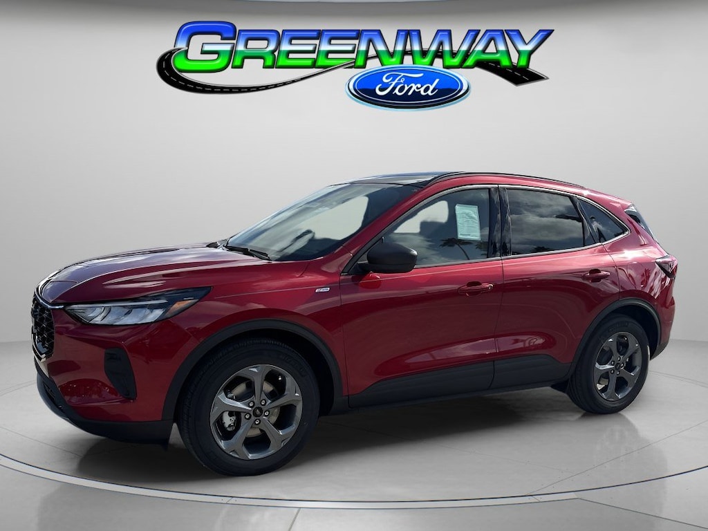 Our sporty 2025 Ford Escape ST-Line can turn heads as it takes on your days in Rapid Red Metallic! Powered by a 2.5 Liter 4 Cylinder and an Electric Motor providing a combined 192hp to an eCVT for energetic everyday capability. Agile and versatile, this Front Wheel Drive SUV also scores nearly 42mpg in the city and nearly 36 road-tripping on the highway. For an athletic impression, our Escape is proudly presented with LED signature lighting, a power liftgate, chrome-tipped exhaust outlets, alloy wheels, and ST-Line upgrades like a black mesh grille, a large rear spoiler, an exclusive rear skid plate, and black roof rails.