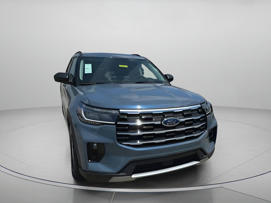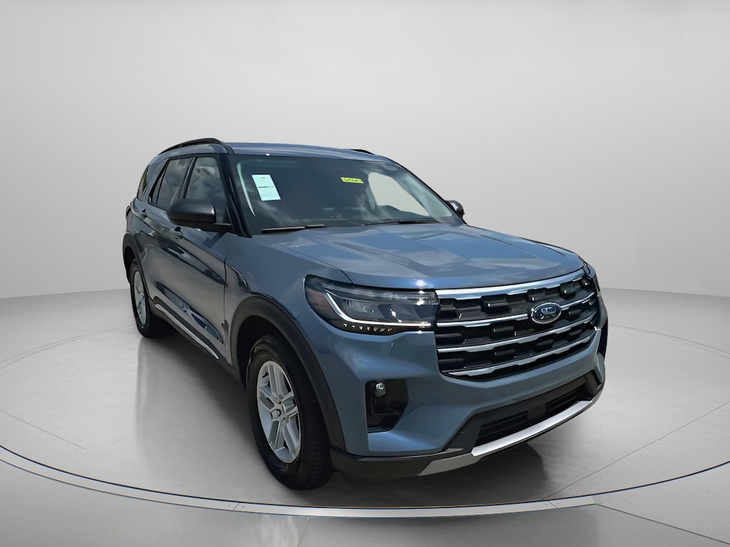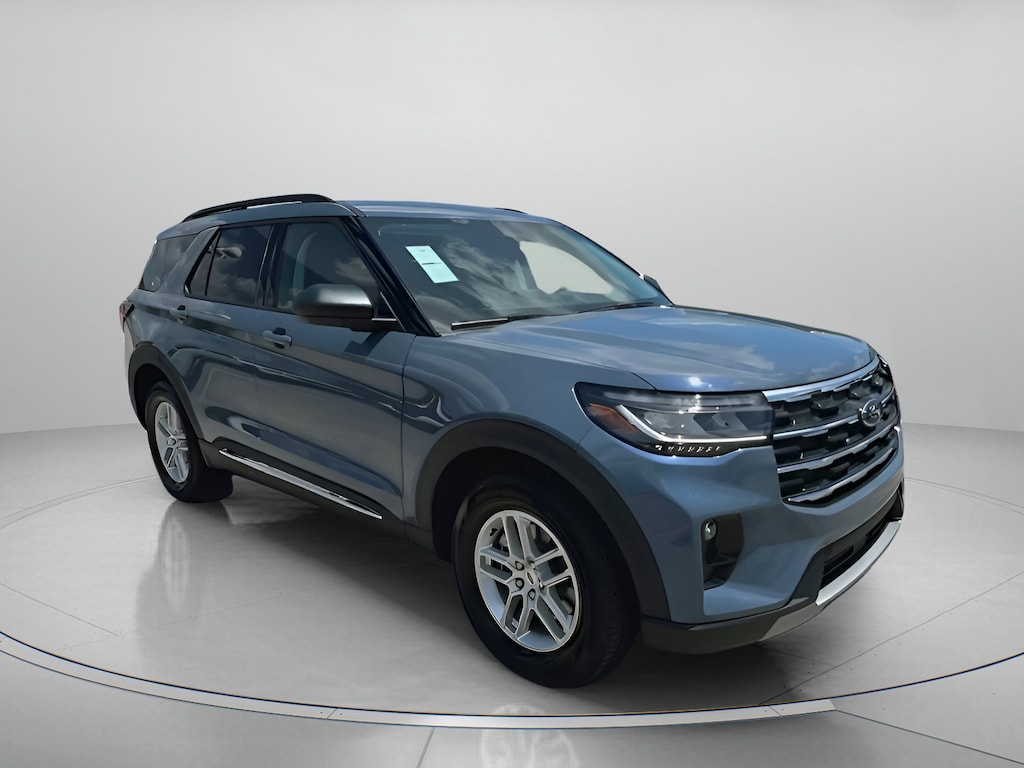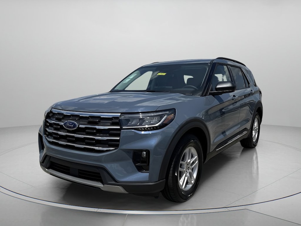 Vapor Blue Metallic 2025 Ford Explorer Active On-Order RWD 10-Speed Automatic 2.3L EcoBoost I-4 3.58 Non-Limited Slip Rear Axle, 3rd row seats: bench, 4-Wheel Disc Brakes, 6 Speakers, ABS brakes, Active Comfort Package, Air Conditioning, Alloy wheels, AM/FM radio: SiriusXM, AM/FM Stereo, Apple CarPlay/Android Auto, Auto High-beam Headlights, Automatic temperature control, Brake assist, Bumpers: body-color, Compass, Delay-off headlights, Driver door bin, Driver vanity mirror, Dual front impact airbags, Dual front side impact airbags, Electronic Stability Control, Emergency communication system: 911 Assist, Equipment Group 200A Standard Package, Exterior Parking Camera Rear, Four wheel independent suspension, Front anti-roll bar, Front Bucket Seats, Front Center Armrest, Front dual zone A/C, Front Fascia, Front reading lights, Fully automatic headlights, Heated ActiveX Seating Material Captain's Chairs, Heated door mirrors, Heated front seats, Heated Steering Wheel, Illuminated entry, Knee airbag, Leather steering wheel, Low tire pressure warning, Navigation System, Occupant sensing airbag, Outside temperature display, Overhead airbag, Overhead console, Panic alarm, Passenger door bin, Passenger vanity mirror, Power door mirrors, Power driver seat, Power Liftgate, Power passenger seat, Power steering, Power windows, Rear air conditioning, Rear anti-roll bar, Rear reading lights, Rear window defroster, Rear window wiper, Remote keyless entry, Remote Start System, Second Row HVAC Controls, Speed control, Speed-sensing steering, Speed-Sensitive Wipers, Split folding rear seat, Spoiler, Steering wheel mounted audio controls, Tachometer, Telescoping steering wheel, Tilt steering wheel, Traction control, Trip computer, Unique Heated Cloth Captain's Chairs, Universal Garage Door Opener (UGDO), Variably intermittent wipers, Wheels: 18" Sparkle Silver-Painted Aluminum.