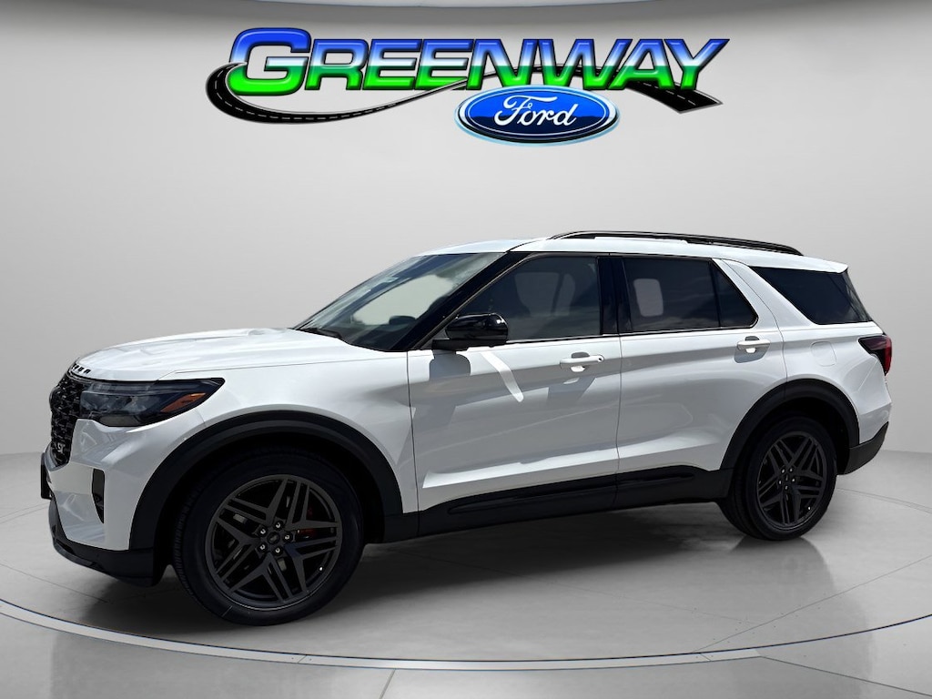 Level up to our 2025 Ford Explorer ST 4WD that looks aggressively athletic in Star White Metallic Tri-Coat! Powered by a Twin-TurboCharged 3.0 Liter EcoBoost V6 serving up 400hp to a paddle-shifted 10 Speed Automatic transmission for premium performance. A sport-tuned suspension and Terrain Management help your family take on tricky trails and twisty roads, and this Four Wheel Drive SUV sees nearly 24mpg on the highway. Showing a confident style all its own, our Explorer boasts LED lighting, quad exhaust outlets, a power liftgate, 21-inch wheels, roof rails, and black accents. Be ready to turn heads in this bold SUV!