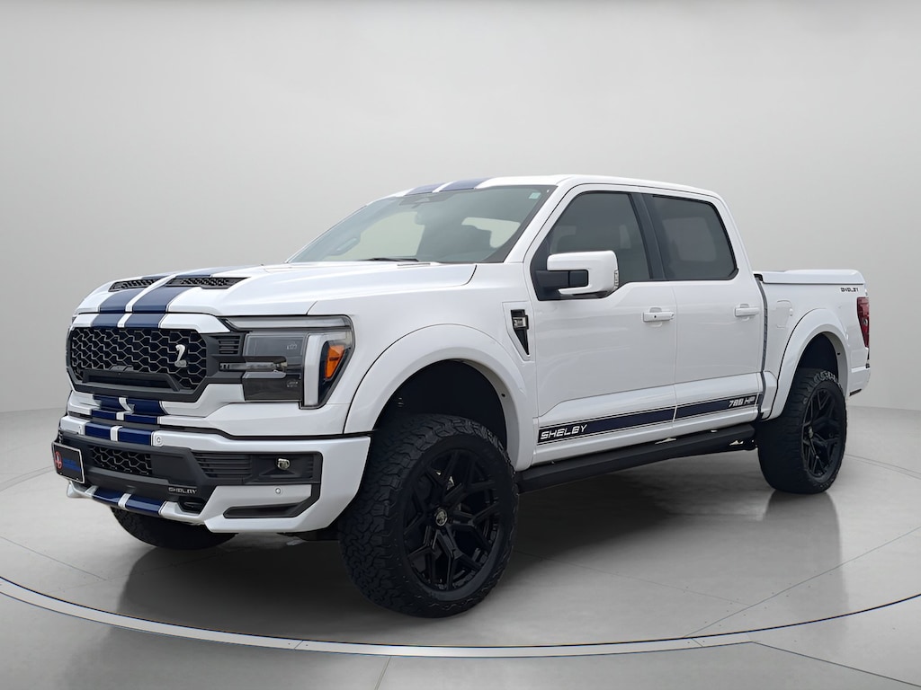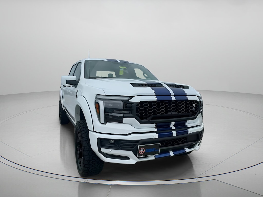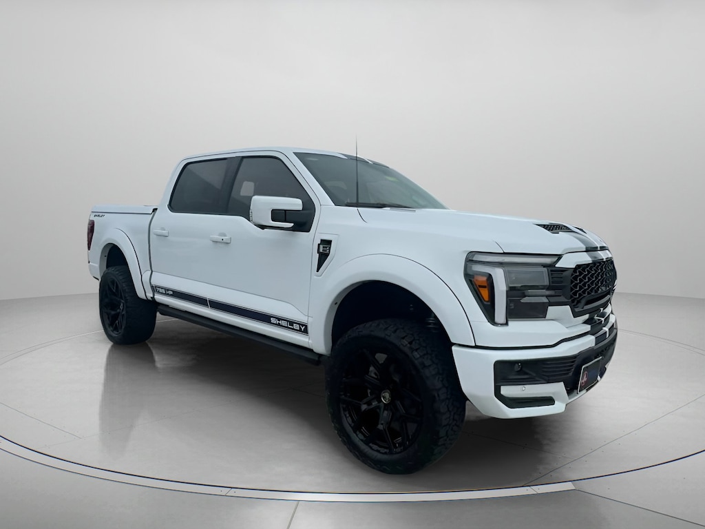 SHELBY PKG! CUSTOM TRUCK! Oxford White 2025 Ford F-150 Lariat In-Transit 4WD 10-Speed Automatic 5.0L V8 4WD, 3.31 Axle Ratio, 4-Wheel Disc Brakes, 8 Speakers, ABS brakes, ActiveX Trimmed Bucket Seats, Adjustable pedals, Air Conditioning, Alloy wheels, AM/FM radio: SiriusXM with 360L, Auto High-beam Headlights, Auto-dimming door mirrors, Auto-dimming Rear-View mirror, Automatic temperature control, Brake assist, Bumpers: chrome, Chrome wheels, Compass, Console Worksurface, Delay-off headlights, Driver door bin, Driver vanity mirror, Dual front impact airbags, Dual front side impact airbags, Electronic Locking w/3.73 Axle Ratio, Electronic Stability Control, Emergency communication system: SYNC 4 911 Assist, Equipment Group 501A Mid, Front anti-roll bar, Front Bucket Seats, Front Center Armrest, Front dual zone A/C, Front fog lights, Front License Plate Bracket, Front reading lights, Front wheel independent suspension, Fully automatic headlights, Garage door transmitter, Heated door mirrors, Heated front seats, Heated steering wheel, Illuminated entry, Low tire pressure warning, Memory seat, Mobile Office Package, Navigation system: Connected Navigation, Occupant sensing airbag, Outside temperature display, Overhead airbag, Overhead console, Panic alarm, Passenger door bin, Passenger vanity mirror, Pedal memory, Power door mirrors, Power driver seat, Power passenger seat, Power steering, Power windows, Radio data system, Radio: B&O Sound System by Bang & Olufsen, Rain sensing wipers, Rear reading lights, Rear seat center armrest, Rear step bumper, Rear window defroster, Remote keyless entry, Security system, Speed control, Split folding rear seat, Steering wheel mounted audio controls, SYNC 4 w/Enhanced Voice Recognition, Tachometer, Telescoping steering wheel, Tilt steering wheel, Traction control, Trip computer, Turn signal indicator mirrors, Twin Panel Moonroof, Variably intermittent wipers, Ventilated front seats, Voltmeter, Wheel Well Liner, Wheels: 18" Chrome-Like PVD, SHELBY, 4WD.