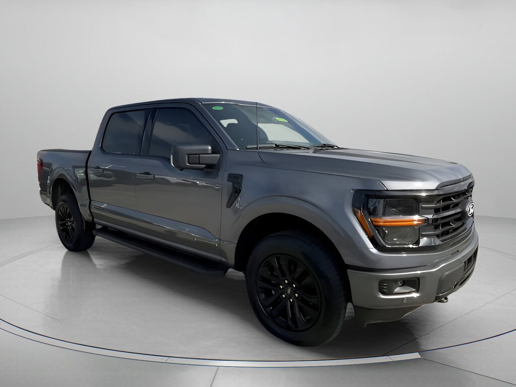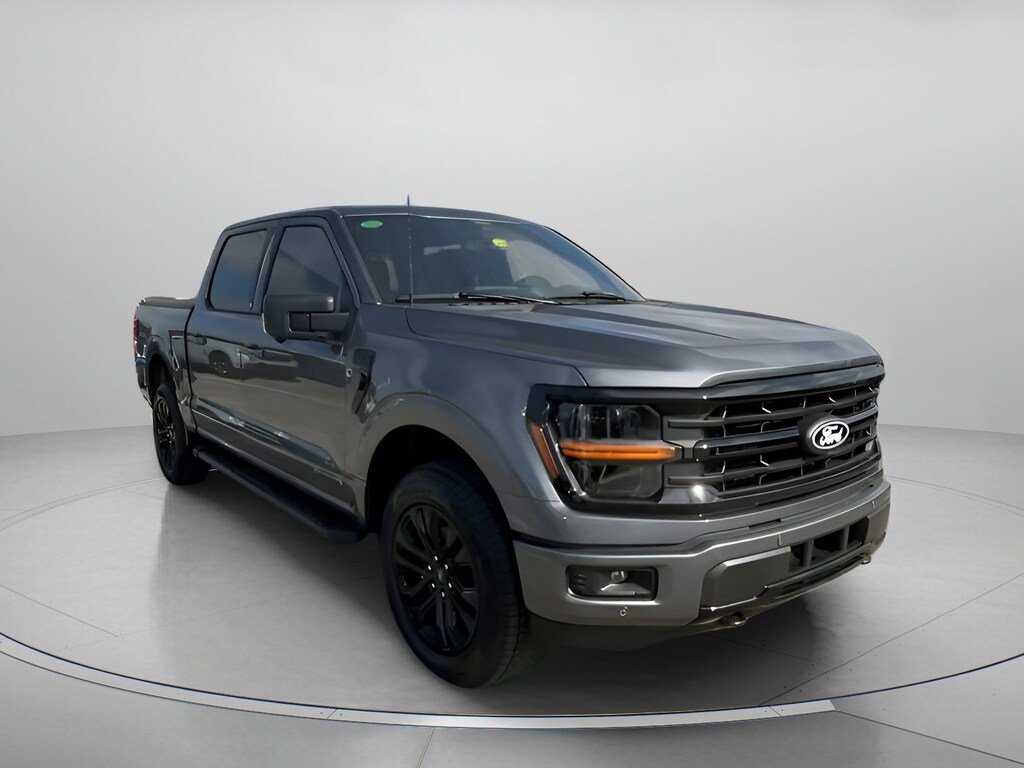 Carbonized Gray Metallic 2025 Ford F-150 XLT 4WD 10-Speed Automatic 3.5L PowerBoost Full-Hybrid V6 3.5L PowerBoost Full-Hybrid V6, 4WD, 4-Wheel Disc Brakes, 4x4 FX4 Off-Road Bodyside Decal, 6 Speakers, 6" Black Running Boards, ABS brakes, Air Conditioning, Alloy wheels, AM/FM radio, Auto High-beam Headlights, Black Exterior Badging, Black Grille, Body-Color Front & Rear Bumpers, Brake assist, Bumpers: chrome, Chrome Door & Tailgate Handles, Chrome wheels, Cloth 40/20/40 Front Seat, Cloth 40/Console/40 Front Seats, Compass, Connected Navigation, Console Worksurface, Dark Interior Appliques, Delay-off headlights, Driver door bin, Driver vanity mirror, Dual Exhaust w/Black Tips, Dual front impact airbags, Dual front side impact airbags, Electronic Locking w/3.73 Axle Ratio, Electronic Stability Control, Emergency communication system: SYNC 4 911 Assist, Equipment Group 302A Mid, Floor Shifter, Front anti-roll bar, Front Center Armrest, Front fog lights, Front reading lights, Front wheel independent suspension, Fully automatic headlights, FX4 Off-Road Package, Gray Box Side Decal, Heated door mirrors, Heated Front Seats, Illuminated entry, Integrated Trailer Brake Controller, Low tire pressure warning, Mobile Office Package, Monotube Rear Shocks, Occupant sensing airbag, Off-Road Tuned Front Shock Absorbers, Outside temperature display, Overhead airbag, Overhead console, Panic alarm, Partitioned Lockable Rear Storage, Passenger door bin, Passenger vanity mirror, Power door mirrors, Power Glass Heated Sideview Mirrors, Power steering, Power windows, Pro Power Onboard - 7.2KW, Radio data system, Radio: AM/FM Stereo w/6 Speakers, Rear Parking Sensors, Rear reading lights, Rear step bumper, Rear window defroster, Remote keyless entry, Rock Crawl Mode, Security system, Speed control, Split folding rear seat, Steering wheel mounted audio controls, SYNC 4 w/Enhanced Voice Recognition, Tachometer, Telescoping steering wheel, Tilt steering wheel, Tow/Haul Package, Traction control, Trip computer, Unique Sport Cloth 40/Console/40 Front-Seats, Variably intermittent wipers, Voltmeter, Wheels: 18" Chrome-Like PVD, Wheels: 20" Gloss Black Painted Aluminum, Wrapped Steering Wheel, XLT Black Appearance Package Plus, 3.5L PowerBoost Full-Hybrid V6, 4WD.