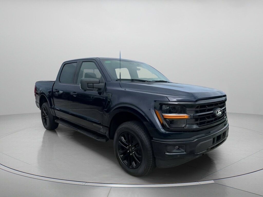 Antimatter Blue Metallic 2025 Ford F-150 XLT In-Stock 4WD 10-Speed Automatic 3.5L PowerBoost Full-Hybrid V6 3.5L PowerBoost Full-Hybrid V6, 4WD, 3.31 Axle Ratio, 360 Degree Camera, 4 Pickup Box Tie-Down Plates, 4-Wheel Disc Brakes, 400W Cab & Bed Outlets, 6 Speakers, 6" Angular Bright Anodized Step Bar, ABS brakes, Adaptive Cruise Control w/Stop & Go, Air Conditioning, Alloy wheels, AM/FM radio: SiriusXM with 360L, Auto High-beam Headlights, Auto-Dimming Rear-View Mirror, Bed Utility Package, Black Painted Grille w/Chrome Center Bar, Brake assist, Bumpers: chrome, Chrome Door & Tailgate Handles, Chrome Single-Tip Exhaust, Chrome wheels, Cloth 40/20/40 Front Seat, Cloth 40/Console/40 Front Seats, Compass, Connected Navigation, Console Worksurface, Delay-off headlights, Driver door bin, Driver State Detection, Driver vanity mirror, Dual front impact airbags, Dual front side impact airbags, Dual-Zone Electronic Automatic Temperature Control, Electronic Locking w/3.73 Axle Ratio, Electronic Stability Control, Emergency communication system: SYNC 4 911 Assist, Equipment Group 302A Mid, Evasive Steering Assist, Ford Co-Pilot360 Assist 2.0, Front anti-roll bar, Front Center Armrest, Front fog lights, Front Parking Sensors, Front reading lights, Front wheel independent suspension, Fully automatic headlights, FX4 Off-Road Package, Heated door mirrors, Heated Front Seats, Illuminated entry, Intelligent Access w/Push Button Start, LED Box Lighting, Low tire pressure warning, Mobile Office Package, Occupant sensing airbag, Outside temperature display, Overhead airbag, Overhead console, Panic alarm, Partitioned Lockable Rear Storage, Passenger door bin, Passenger vanity mirror, Power door mirrors, Power Glass Heated Sideview Mirrors, Power steering, Power windows, Power-Sliding Rear Window, Radio data system, Radio: AM/FM Stereo w/SiriusXM 360L, Rear Parking Sensors, Rear reading lights, Rear step bumper, Rear window defroster, Remote keyless entry, Remote Start System w/Remote Tailgate Release, Security system, Speed control, Split folding rear seat, Steering wheel mounted audio controls, SYNC 4 w/Enhanced Voice Recognition, Tachometer, Tailgate Step w/Tailgate Work Surface, Telescoping steering wheel, Tilt steering wheel, Tow/Haul Package, Towing Technology, Traction control, Trip computer, Variably intermittent wipers, Voltmeter, Wheels: 18" Chrome-Like PVD, Wrapped Steering Wheel, 3.5L PowerBoost Full-Hybrid V6, 4WD.