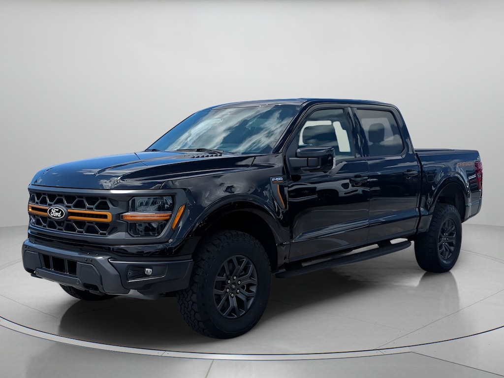 Agate Black Metallic 2025 Ford F-150 Tremor In-Transit 4WD 10-Speed Automatic 5.0L V8 4WD, 2nd Row Heated Seats, 4 Pickup Box Tie-Down Plates, 4-Wheel Disc Brakes, 8 Speakers, ABS brakes, Adjustable pedals, Air Conditioning, Alloy wheels, AM/FM radio: SiriusXM with 360L, Ambient Lighting, Auto High-beam Headlights, Auto-dimming door mirrors, Auto-Dimming Rear-View Mirror, Auto-dimming Rear-View mirror, Automatic temperature control, Bed Utility Package, Brake assist, Bumpers: body-color, Compass, Console Worksurface, Delay-off headlights, Driver door bin, Driver vanity mirror, Dual front impact airbags, Dual front side impact airbags, Electronic Locking w/3.73 Axle Ratio, Electronic Stability Control, Emergency communication system: SYNC 4 911 Assist, Equipment Group 402A High, Front anti-roll bar, Front Axle w/Torsen Differential, Front Bucket Seats, Front Center Armrest, Front dual zone A/C, Front fog lights, Front reading lights, Front wheel independent suspension, Fully automatic headlights, GVWR: 7,100 lbs Payload Package, Heads-Up Display, Heated door mirrors, Heated front seats, Heated Steering Wheel, Illuminated entry, Integrated Trailer Brake Controller, LED Box Lighting, LED Taillamps, Low tire pressure warning, Media Bin Door, Mobile Office Package, Modular Front Bumper & Carbon Black Rear Bumper, Navigation system: Connected Navigation, Occupant sensing airbag, Outside temperature display, Overhead airbag, Overhead console, Panic alarm, Partitioned Lockable Rear Storage, Passenger door bin, Passenger vanity mirror, Power door mirrors, Power driver seat, Power Glass Heated Sideview Mirrors, Power passenger seat, Power steering, Power Tailgate, Power windows, Power-Adjustable Pedals w/Memory, Premium Wrapped Steering Wheel, Radio data system, Radio: B&O Sound System by Bang & Olufsen, Radio: B&O Unleashed Sound System by Bang & Olufsen, Rain-Sensing Wipers, Rear reading lights, Rear step bumper, Rear window defroster, Remote keyless entry, Security system, Speed control, Split folding rear seat, Steering wheel mounted audio controls, SYNC 4 w/Enhanced Voice Recognition, Tachometer, Tailgate Step w/Tailgate Work Surface, Telescoping steering wheel, Tilt steering wheel, Tow/Haul Package, Traction control, Trip computer, Turn signal indicator mirrors, Two-Speed Automatic AWD w/Mechanical Locking 4WD, Unique Sport Cloth 40/Console/40 Power Front Seat, Unique Tremor Leather-Trimmed Bucket Seats, Universal Garage Door Opener, Variably intermittent wipers, Voltmeter, Wheels: 18" Alloy w/Dark Matte Finish, Wireless Charging, 4WD.