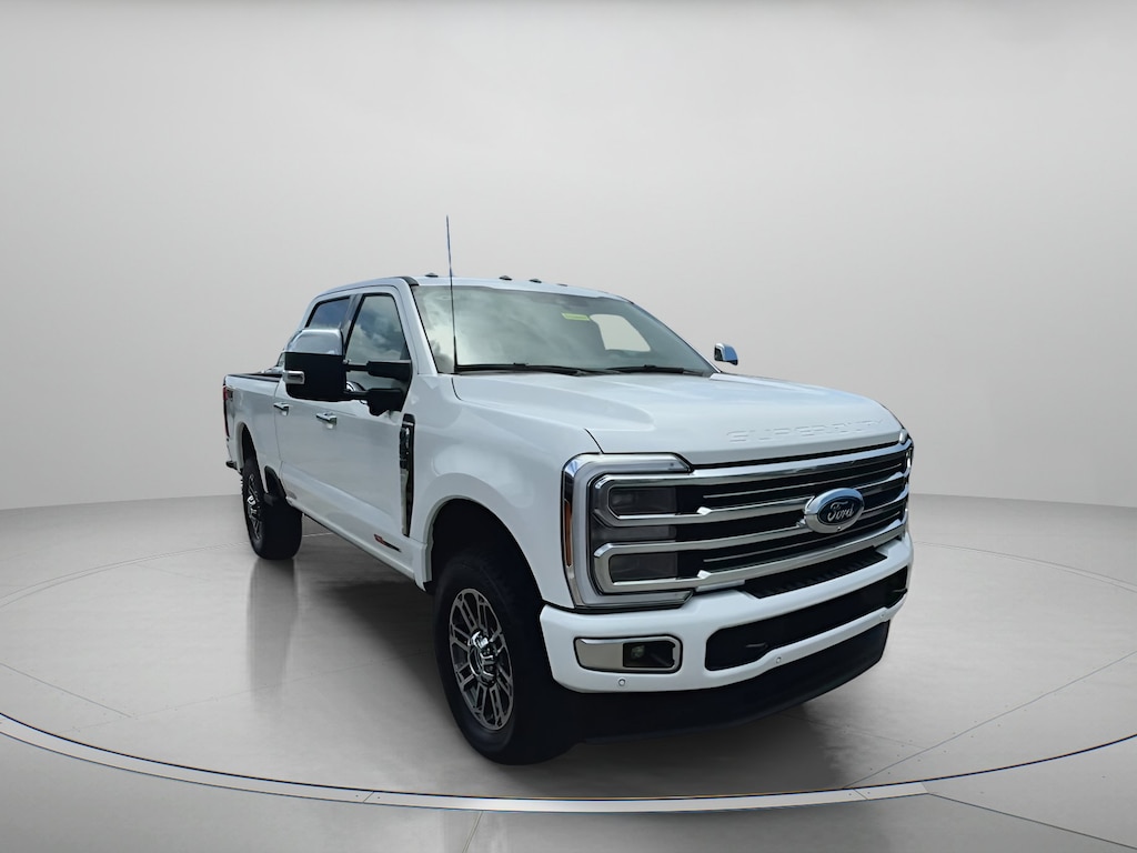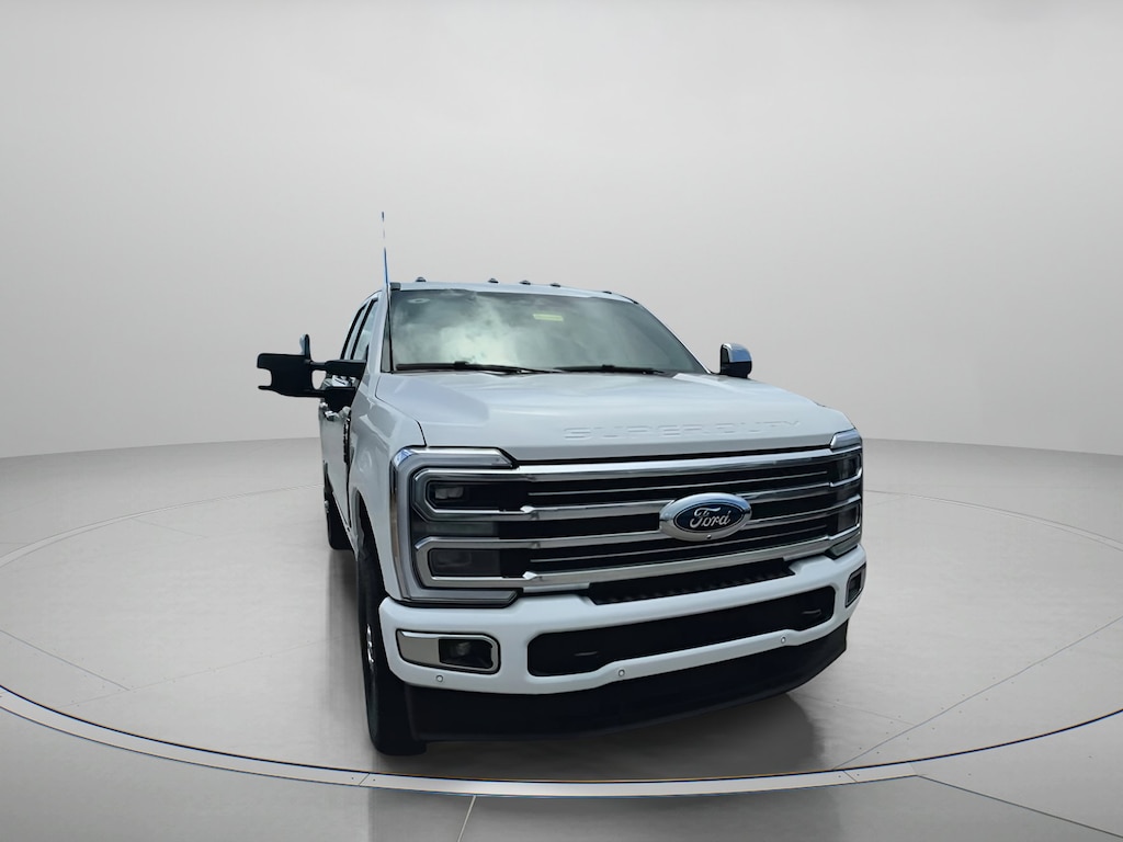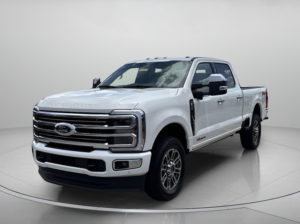 Star White Metallic Tri-Coat 2025 Ford F-250SD Platinum In-Transit 4WD 10-Speed Automatic 6.7L High Output Power Stroke V8 Diesel 4WD, 3.73 Axle Ratio, 4-Wheel Disc Brakes, 410 Amp Dual Alternators, 5th Wheel/Gooseneck Hitch Prep Package, ABS brakes, Adjustable pedals, Air Conditioning, Alloy wheels, AM/FM radio: SiriusXM with 360L, Auto High-beam Headlights, Auto-dimming Rear-View mirror, Automatic temperature control, Brake assist, Compass, Delay-off headlights, Driver door bin, Driver vanity mirror, Dual front impact airbags, Dual front side impact airbags, Electronic Stability Control, Electronic-Locking w/3.31 Axle Ratio, Emergency communication system: SYNC 4 911 Assist, Engine Block Heater, F-250 >10K GVWR Package, Flow-Through Console, Front anti-roll bar, Front Bucket Seats, Front Center Armrest, Front dual zone A/C, Front fog lights, Front reading lights, Fully automatic headlights, FX4 Off-Road Package, Garage door transmitter, Heated door mirrors, Heated front seats, Heated rear seats, Heated steering wheel, High Capacity 11.6" Axle Upgrade Package, Hill Descent Control, Illuminated entry, LED Roof Clearance Lights, Low tire pressure warning, Memory seat, Navigation System, Off-Road Specifically Tuned Shock Absorbers, Outside temperature display, Overhead airbag, Overhead console, Panic alarm, Passenger door bin, Passenger vanity mirror, Pedal memory, Power door mirrors, Power driver seat, Power passenger seat, Power steering, Power windows, Radio: B&O Unleashed Sound System by Bang & Olufsen, Rain sensing wipers, Rear reading lights, Rear seat center armrest, Rear step bumper, Rear window defroster, Remote keyless entry, Security system, SiriusXM Radio w/360L, Speed control, Split folding rear seat, Steering wheel mounted audio controls, SYNC 4 w/Enhanced Voice Recognition, Tachometer, Telescoping steering wheel, Tilt steering wheel, Traction control, Trip computer, Turn signal indicator mirrors, Unique FX4 Off-Road Box Decal, Variably intermittent wipers, Ventilated front seats, 4WD.