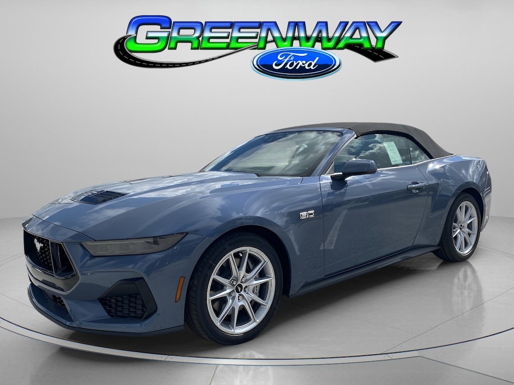 Built to dominate the open road, our 2025 Ford Mustang GT Premium Convertible pairs power with style in the Vapor Blue Metallic design! Powered by a 5.0 Liter V8 serving up 480hp to a paddle-shifted 10 Speed Automatic transmission for pure pony-car thrills. Agile and eager for action, this corner-carving convertible returns nearly 24mpg on the highway with revved-up good looks. You're ready to make a bold impression with our Mustang's powered soft top, signature LED lighting, sequential taillights, wedge-type rear spoiler, heated power mirrors, alloy wheels, and vented hood.