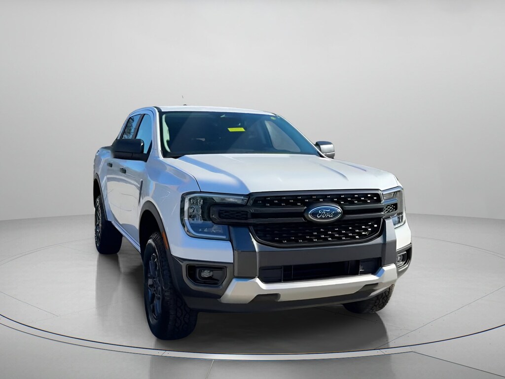 Oxford White 2025 Ford Ranger XLT On-Order RWD 10-Speed Automatic EcoBoost 2.3L I4 GTDi DOHC Turbocharged VCT 3.73 Axle Ratio, 4-Wheel Disc Brakes, 6 Speakers, ABS brakes, Air Conditioning, Alloy wheels, AM/FM radio: SiriusXM, AM/FM Stereo, Auto High-beam Headlights, Auto-dimming Rear-View mirror, Brake assist, Class IV Trailer Hitch Receiver, Cloth Front Bucket Seats, Compass, Delay-off headlights, Driver door bin, Driver vanity mirror, Dual front impact airbags, Dual front side impact airbags, Electronic Stability Control, Emergency communication system: SYNC 4 911 Assist, Equipment Group 300A Standard, Front anti-roll bar, Front Bucket Seats, Front Center Armrest, Front fog lights, Front reading lights, Front wheel independent suspension, Fully automatic headlights, Gray Painted Center Bar & Grille Surround, Gray Painted Front Fascia & Rear Bumper, Illuminated entry, Leather Shift Knob, Low tire pressure warning, Navigation system: Connected Navigation, Occupant sensing airbag, Outside temperature display, Overhead airbag, Overhead console, Panic alarm, Passenger door bin, Passenger vanity mirror, Power door mirrors, Power steering, Power windows, Rear reading lights, Rear seat center armrest, Rear step bumper, Rear window defroster, Remote keyless entry, Security system, SiriusXM Satellite Radio, Speed control, Speed-sensing steering, Sport Appearance Package, Sport Box Decal, Steering wheel mounted audio controls, SYNC 4A w/Connected Navigation, Telescoping steering wheel, Tilt steering wheel, Traction control, Trailer Tow Package, Trip computer, Variably intermittent wipers, Voltmeter, Wheels: 17" Gray-Painted Aluminum.
