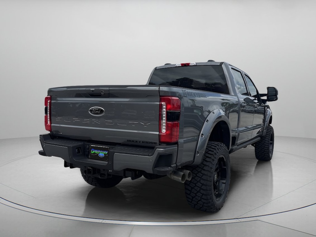 2025 Ford F-250SD Black Widow Lift | BDS Suspension Lift | FOX 2.0 Performance Series Shocks | 22 inch Black Off Road Wheels (Exch) | 37 inch Premium Mud Terrain Tires (Exch) | Speedometer Calibration | Body Color Pocket Fender Flares | Power Running Boards | Leather Seat Covers with Custom Stitch | RGB Bluetooth Rock Lights | Custom Graphic Package | Tinted Front Windows | Rocky Ridge Windshield Banner | Rocky Ridge Exterior Badging
