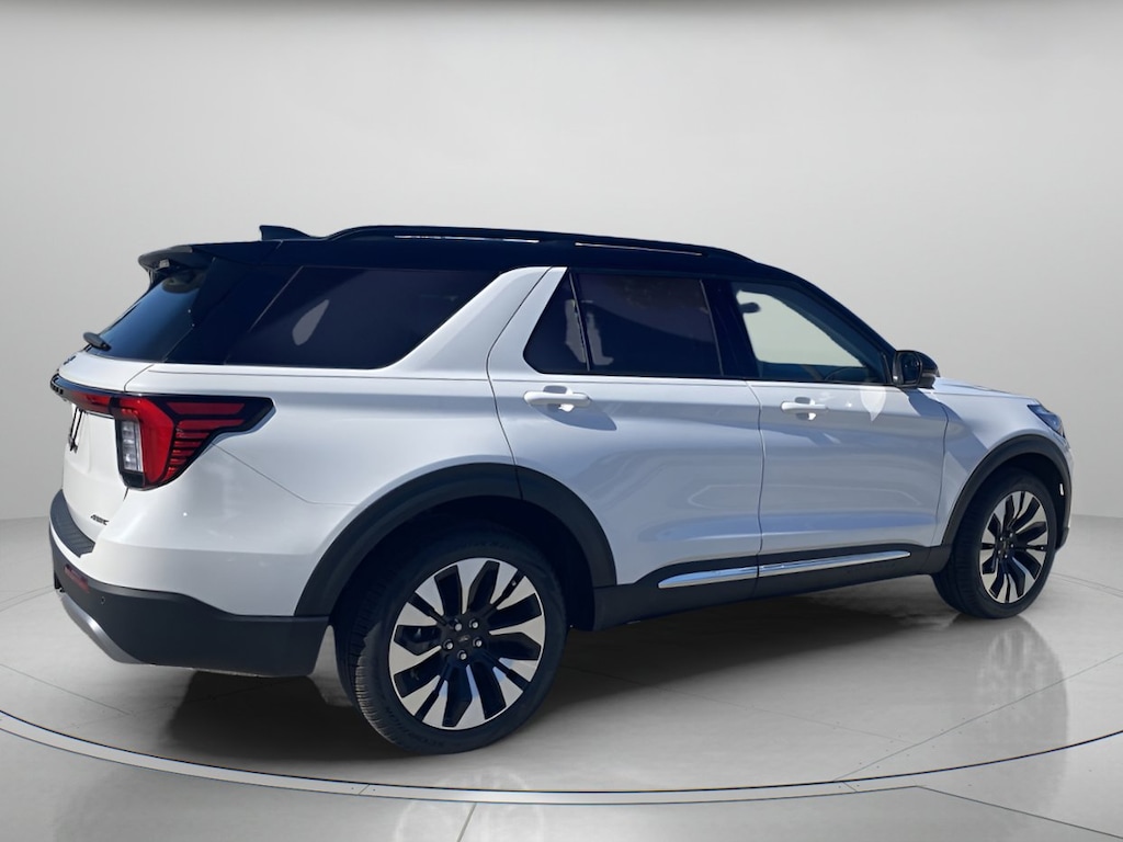 Our 2026 Ford Explorer Platinum 4WD in Star White Metallic Tri-Coat blends commanding power with first-class details to make every family journey exceptional. Motivated by a TurboCharged 2.3. Liter 4 Cylinder generating 300hp for a 10 Speed Automatic transmission. This Four Wheel Drive SUV also combines terrain management and a robust suspension for traveling tough trails, and it returns nearly 27mpg on the highway. Dramatic Explorer details include adaptive LED headlights, fog lamps, upsized 20-inch wheels, silver-painted skid-plate elements, a power liftgate, a sunroof, chrome exhaust tips, and satin aluminum roof rails.