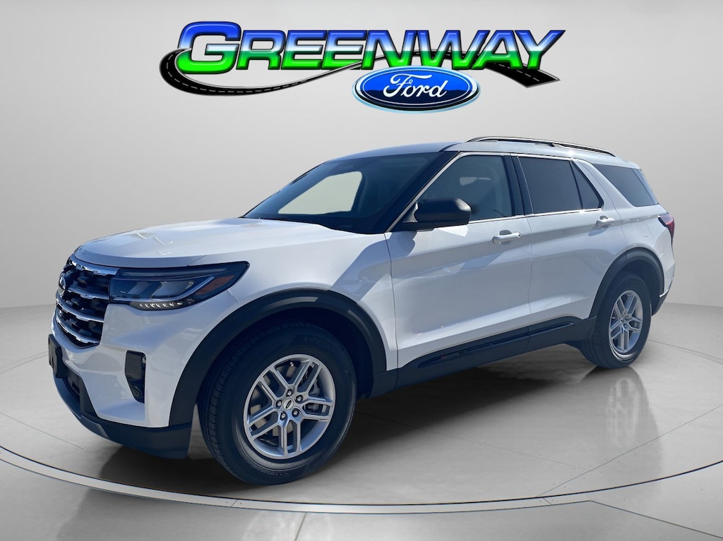Fantastically functional, our 2026 Ford Explorer Active in Star White Metallic Tri-Coat brings roomy comfort, safety, and smart tech to every family. Powered by a TurboCharged 2.3 Liter EcoBoost 4 Cylinder offering 300hp to a 10 Speed Automatic transmission with six drive modes. Take off with terrain management to be ready for the rough stuff, and this Rear Wheel Drive SUV returns nearly 28mpg on the highway. Strong lines give our Explorer a muscular look to complement its LED lighting, power liftgate, roof rails, front skid-plate trim, alloy wheels, and black body cladding.