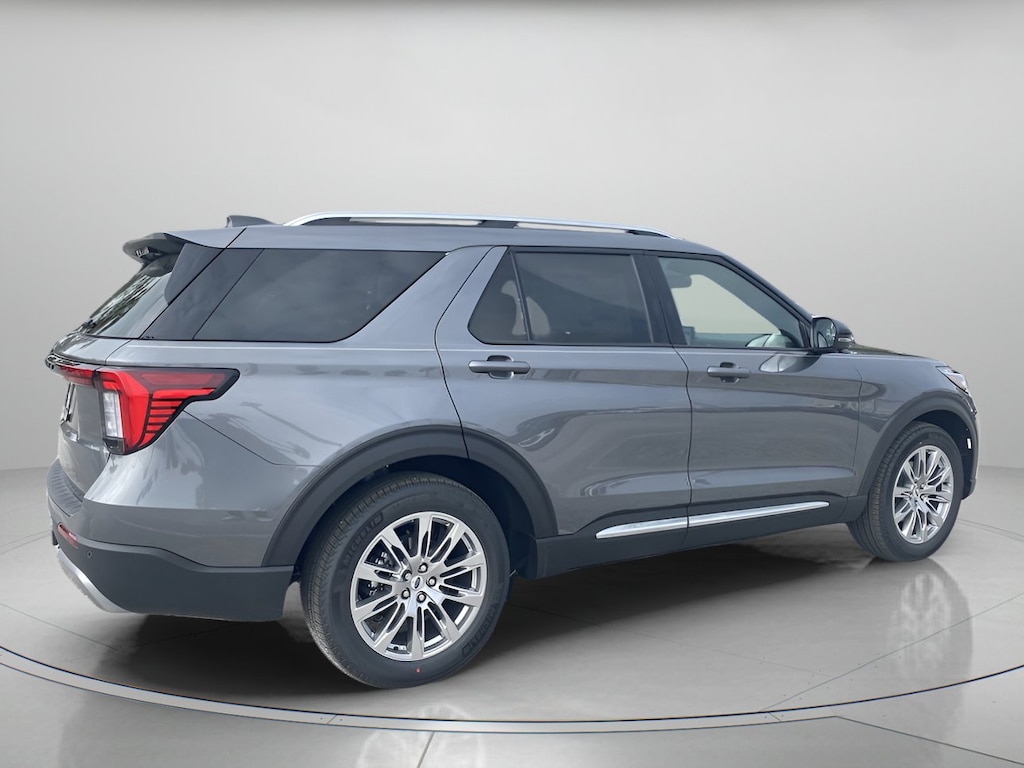 Elevate every drive in our 2026 Ford Explorer Platinum in Carbonized Gray Metallic, with advanced technology and convenience features built for modern adventures. Motivated by a TurboCharged 2.3. Liter 4 Cylinder generating 300hp for a 10 Speed Automatic transmission. This Rear Wheel Drive SUV also combines terrain management and a robust suspension for traveling tough trails, and it returns nearly 28mpg on the highway. Dramatic Explorer details include adaptive LED headlights, fog lamps, 20-inch wheels, silver-painted skid-plate elements, a power liftgate, chrome exhaust tips, a power sunroof, and satin aluminum roof rails.