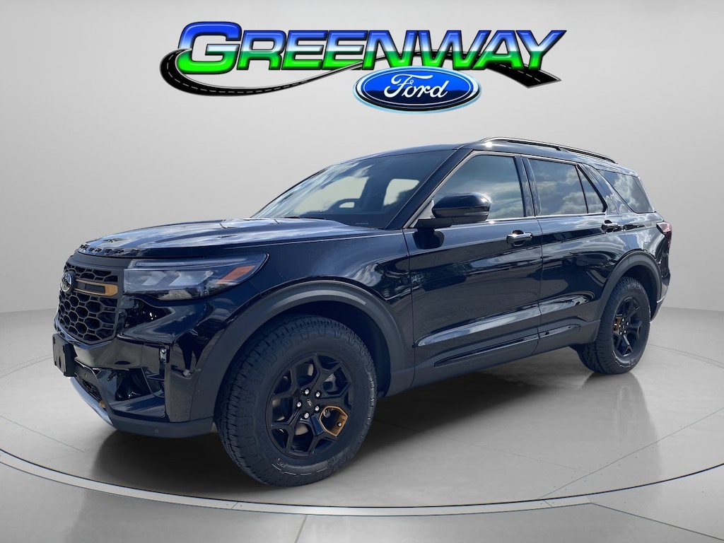 Take the path less traveled with confidence: our 2026 Ford Explorer Tremor 4WD, equipped with the Ultimate Package in Agate Black Metallic, delivers elevated ground clearance, all-terrain prowess, and an unmistakable presence on every journey. Powered by a TurboCharged 3.0 Liter EcoBoost V6 offering 400hp to a 10 Speed Automatic transmission with seven drive modes. Take off with terrain management to be ready for the rough stuff, and this Four Wheel Drive SUV returns nearly 27mpg on the highway. Strong lines give our Explorer a muscular look that complements the Ultimate Pack's features, including a sunroof, LED lighting, power liftgate, taller ride height, roof rails, front skid plate trim, all-terrain tires, alloy wheels, and body cladding featuring Tremor badges.