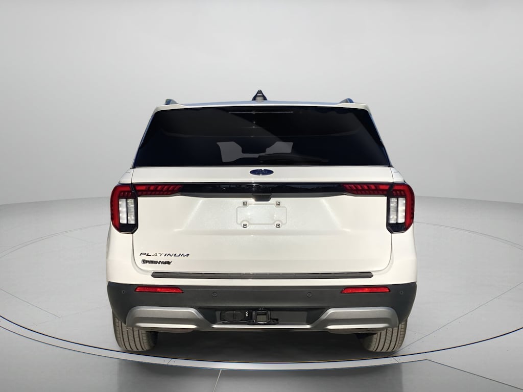 Elevate every drive in our 2026 Ford Explorer Platinum in Star White Metallic Tri-Coat, with advanced technology and convenience features built for modern adventures. Motivated by a TurboCharged 2.3. Liter 4 Cylinder generating 300hp for a 10 Speed Automatic transmission. This Rear Wheel Drive SUV also combines terrain management and a robust suspension for traveling tough trails, and it returns nearly 28mpg on the highway. Dramatic Explorer details include adaptive LED headlights, fog lamps, 20-inch wheels, silver-painted skid-plate elements, a power liftgate, chrome exhaust tips, a power sunroof, and satin aluminum roof rails.
