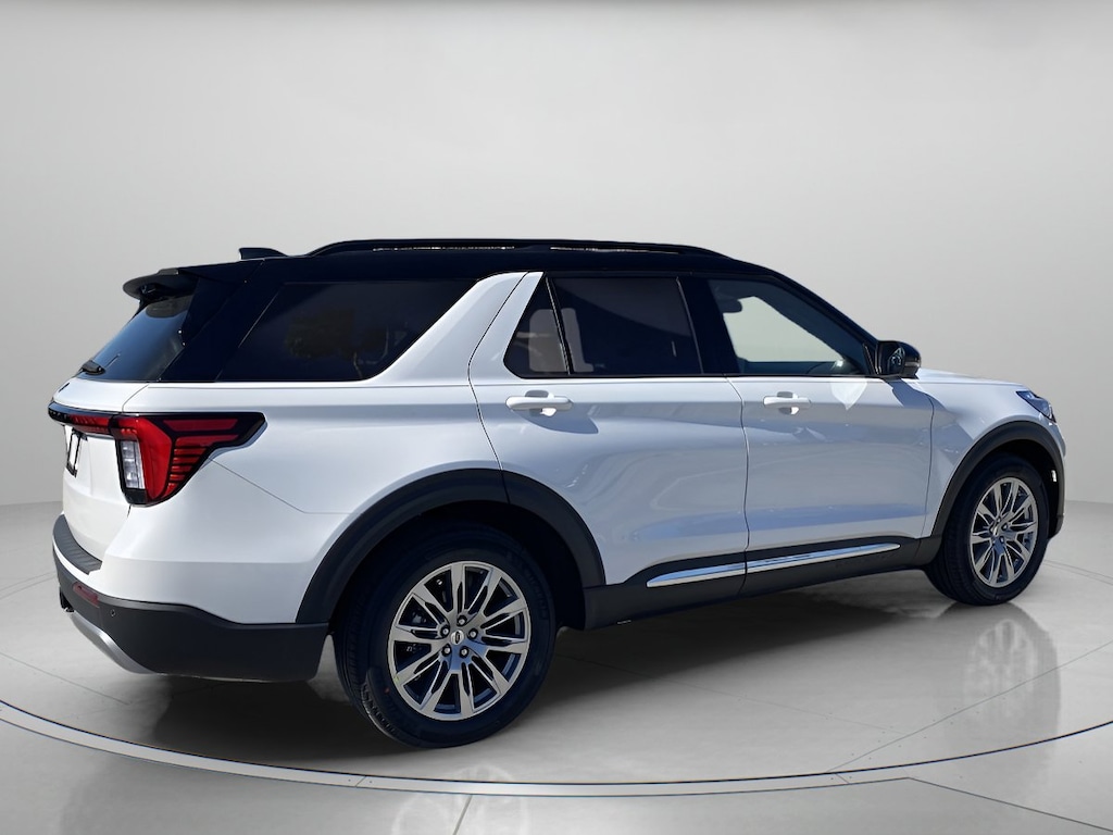 Elevate every drive in our 2026 Ford Explorer Platinum in Star White Metallic Tri-Coat, with advanced technology and convenience features built for modern adventures. Motivated by a TurboCharged 2.3. Liter 4 Cylinder generating 300hp for a 10 Speed Automatic transmission. This Rear Wheel Drive SUV also combines terrain management and a robust suspension for traveling tough trails, and it returns nearly 28mpg on the highway. Dramatic Explorer details include adaptive LED headlights, fog lamps, 20-inch wheels, silver-painted skid-plate elements, a power liftgate, chrome exhaust tips, and satin aluminum roof rails.