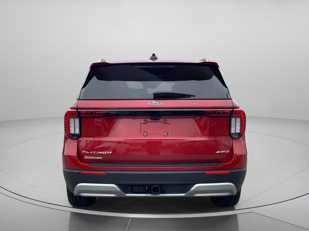 Our 2026 Ford Explorer Platinum 4WD in Rapid Red Metallic blends commanding power with first-class details to make every family journey exceptional. Motivated by a TurboCharged 2.3. Liter 4 Cylinder generating 300hp for a 10 Speed Automatic transmission. This Four Wheel Drive SUV also combines terrain management and a robust suspension for traveling tough trails, and it returns nearly 27mpg on the highway. Dramatic Explorer details include adaptive LED headlights, fog lamps, upsized 20-inch wheels, silver-painted skid-plate elements, a power liftgate, chrome exhaust tips, and satin aluminum roof rails.
