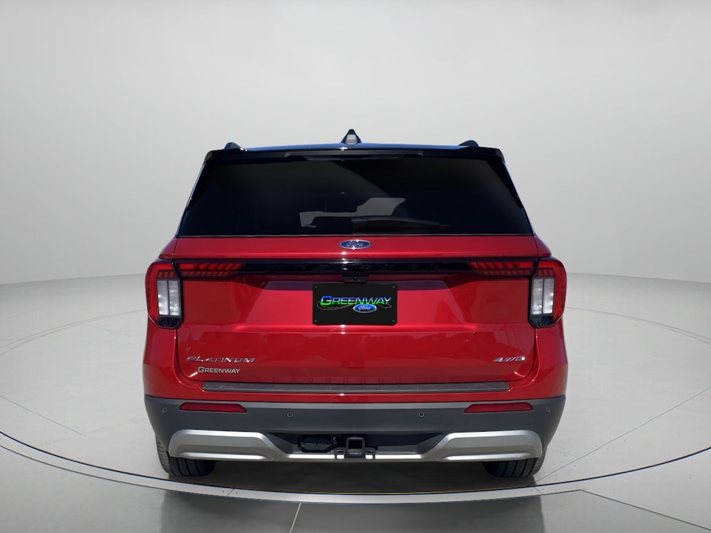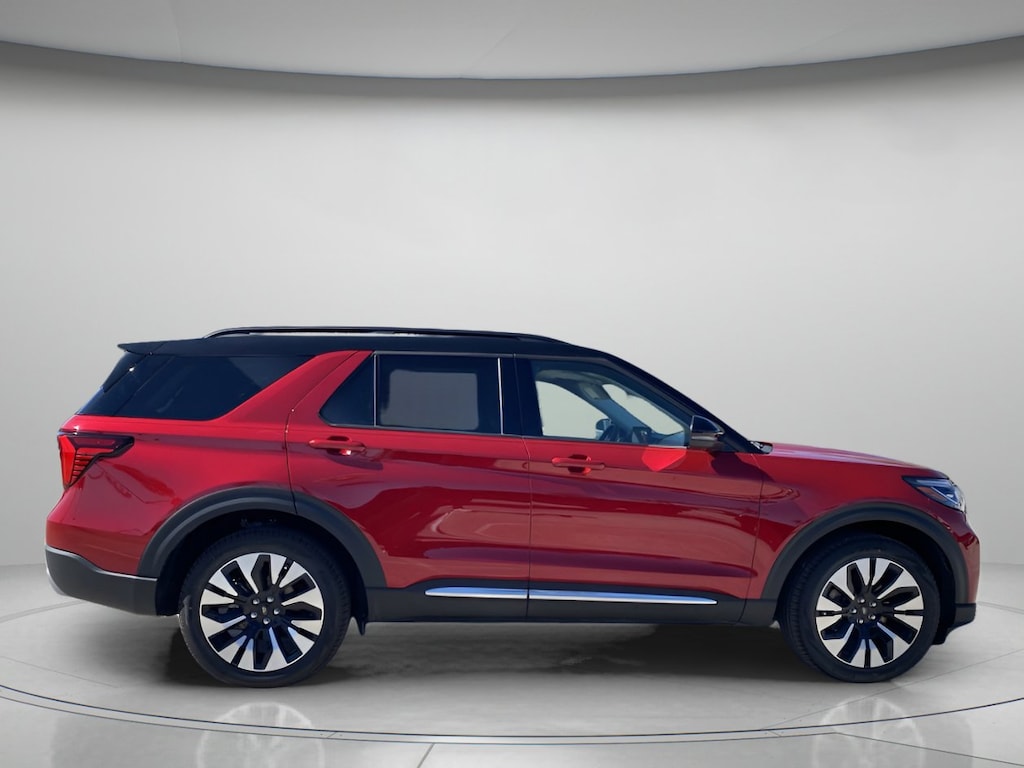 Our 2026 Ford Explorer Platinum 4WD in Rapid Red Metallic blends commanding power with first-class details to make every family journey exceptional. Motivated by a TurboCharged 2.3. Liter 4 Cylinder generating 300hp for a 10 Speed Automatic transmission. This Four Wheel Drive SUV also combines terrain management and a robust suspension for traveling tough trails, and it returns nearly 27mpg on the highway. Dramatic Explorer details include adaptive LED headlights, fog lamps, upsized 20-inch wheels, silver-painted skid-plate elements, a power liftgate, chrome exhaust tips, and satin aluminum roof rails.