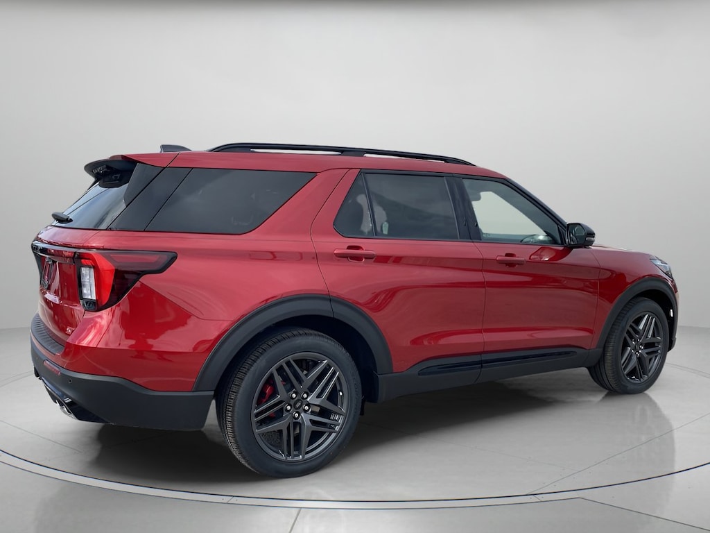 Bold and athletic, our 2026 Ford Explorer ST 4WD with the Sun & Sound Package in Rapid Red Metallic blends dynamic design with all-weather capability. Powered by a Twin-TurboCharged 3.0 Liter EcoBoost V6 serving up 400hp to a paddle-shifted 10 Speed Automatic transmission for premium performance. A sport-tuned suspension and Terrain Management help your family take on tricky trails and twisty roads, and this Four Wheel Drive SUV sees nearly 24mpg on the highway. Showing a confident style all its own, our Explorer boasts LED lighting, quad exhaust outlets, a power liftgate, 20-inch wheels, roof rails, and black accents. Be ready to turn heads in this bold SUV!