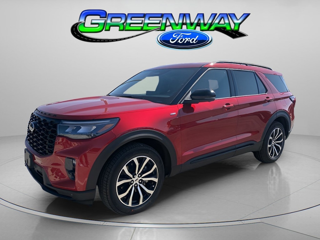 Sporty yet versatile, our 2026 Ford Explorer ST-Line in Rapid Red Metallic blends spirited design with the comfort families expect. Motivated by a TurboCharged 2.3 Liter EcoBoost 4 Cylinder providing 300hp to a 10 Speed Automatic transmission enhanced by multiple drive modes. This Rear Wheel Drive SUV also rides on a responsive suspension, scores nearly 28mpg on the highway, and shows off performance-inspired styling. Our Explorer's exterior highlights include backed-out design cues with black roof rails, black skid-plate elements, dark 20-inch wheels, a power liftgate, and LED lighting with fog lamps and signature lighting. It's a look for owners who love adventure!