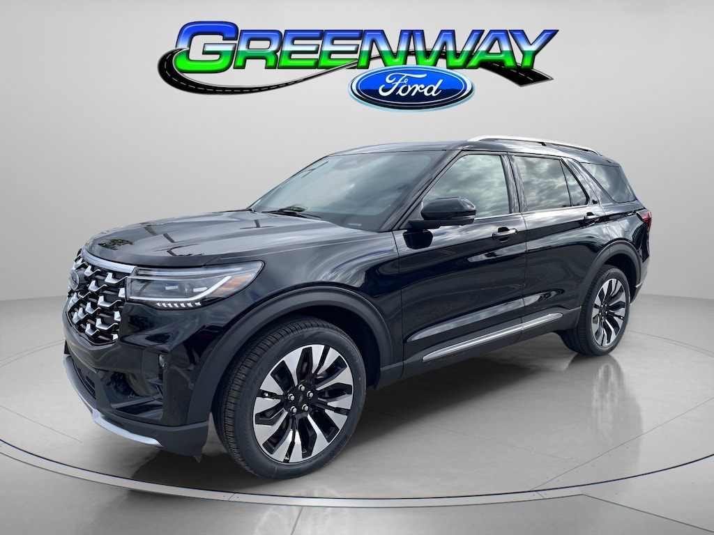 Our 2026 Ford Explorer Platinum 4WD in Agate Black Metallic blends commanding power with first-class details to make every family journey exceptional. Motivated by a TurboCharged 2.3. Liter 4 Cylinder generating 300hp for a 10 Speed Automatic transmission. This Four Wheel Drive SUV also combines terrain management and a robust suspension for traveling tough trails, and it returns nearly 27mpg on the highway. Dramatic Explorer details include adaptive LED headlights, fog lamps, upsized 20-inch wheels, silver-painted skid-plate elements, a power liftgate, chrome exhaust tips, and satin aluminum roof rails.