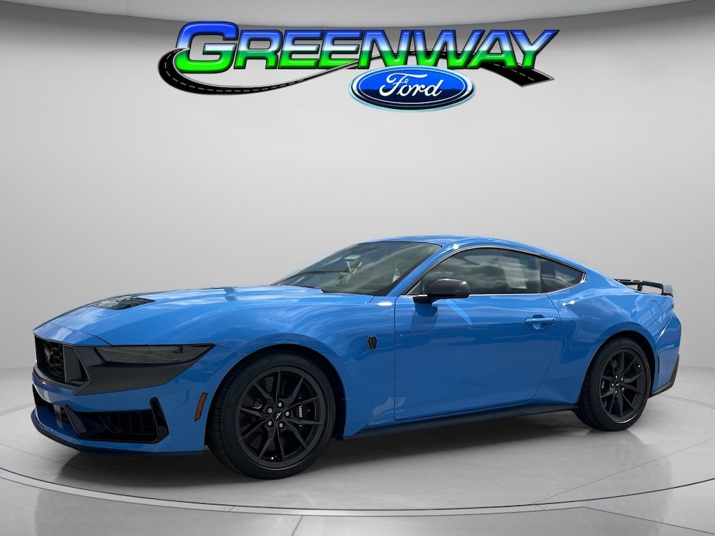 Our 2026 Ford Mustang Dark Horse Fastback stands out from street to track in Grabber Blue Metallic! Motivated by a 5.0 Liter 32V Coyote V8 supplying 500hp to a 6 Speed Tremec Manual transmission for rocket-like runs to 60mph and beyond. This aggressively tuned Mustang also handles with surgical precision, thanks to Brembo brakes, MagneRide damping, and heavy-duty front springs, and it scores nearly 22mpg on the highway. Our Mustang's striking good looks are standard with LED lighting, sequential taillamps, a performance spoiler, 19-inch alloy wheels, and daring Dark Horse details.