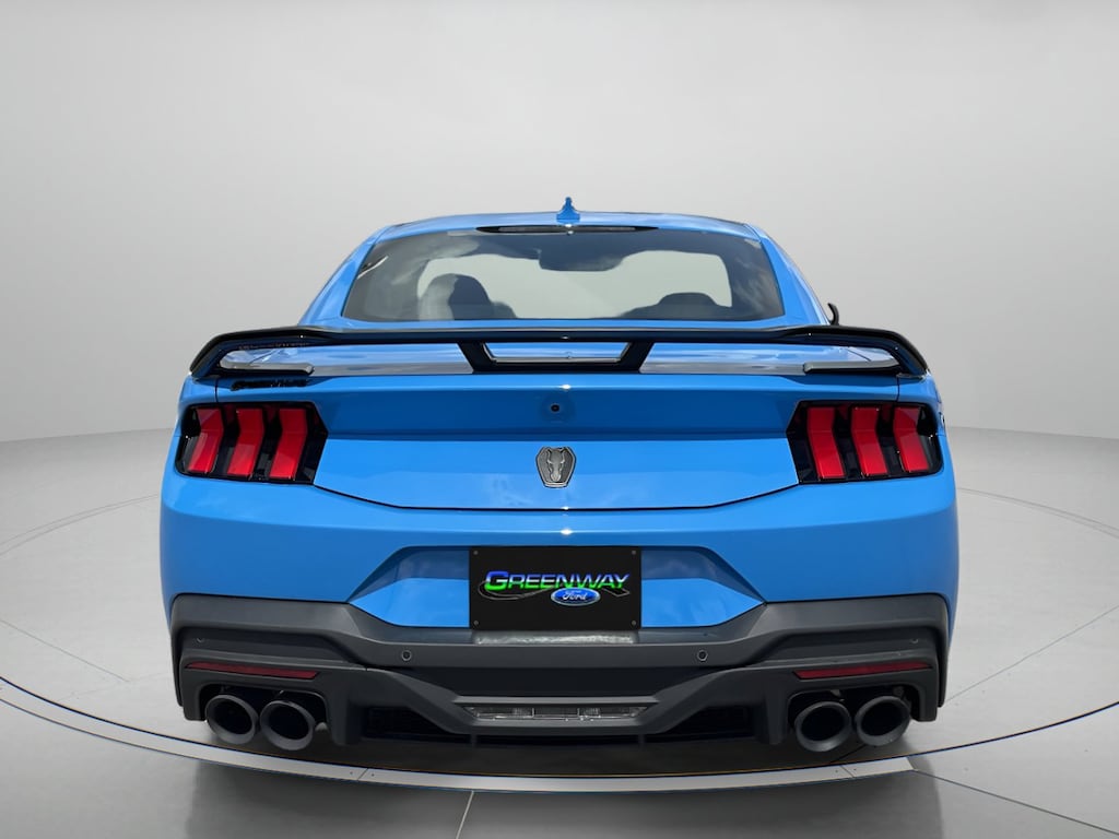 More exclusives highlight our Dark Horse cabin, which showcases heated cloth power front seats, a heated leather flat-bottom steering wheel, dual-zone automatic climate control, keyless access/ignition, black pedals, and an eye-catching Titanium Anodized Blue shifter knob. The digital dash incorporates a 12.4-inch driver display and a 13.2-inch touchscreen to support Track Apps, wireless charging, connected navigation, WiFi compatibility, Android Auto/Apple CarPlay, Bluetooth, and Bang & Olufsen audio.