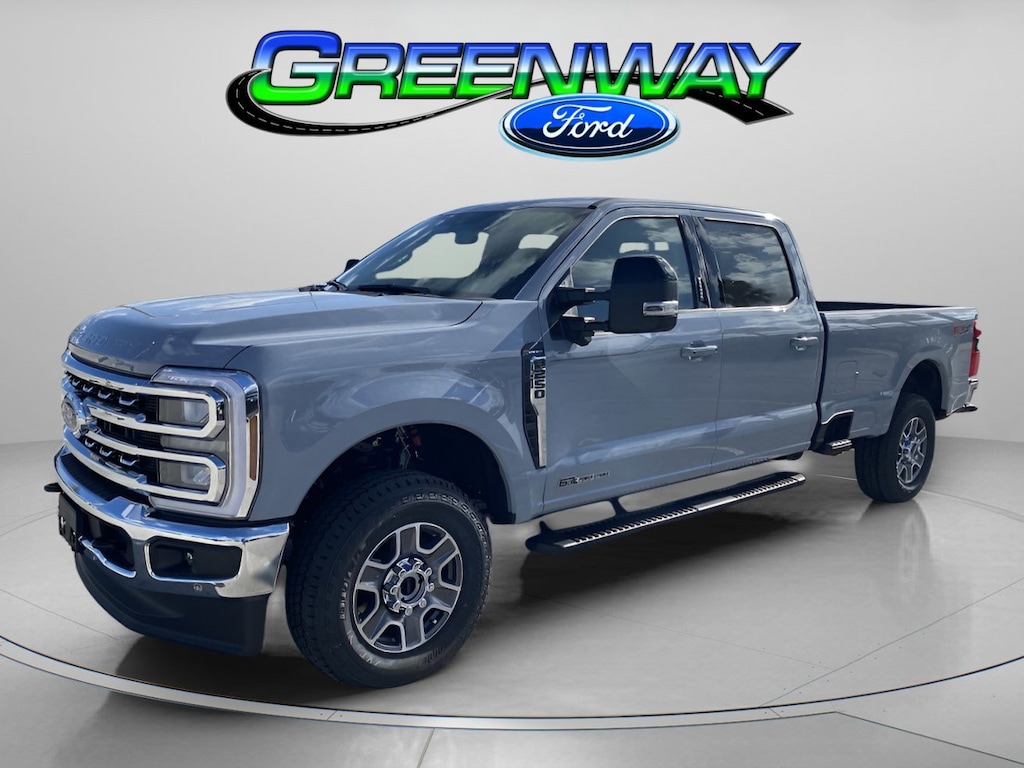 Get into our diesel-powered 2026 Ford F-250 Lariat Crew Cab 4X4 and get jobs done with strength, intelligence, and a bold Glacier Gray Metallic Tri-Coat design! Motivated by a TurboCharged 6.7 Liter PowerStroke Diesel V8 offering 475hp and 1050lb-ft of torque to a 10 Speed Automatic transmission. A robust suspension helps this Four Wheel Drive truck make the most of its impressive towing and payload ratings, and it looks fantastic. Our F-250 Lariat exterior features LED lighting, fog lamps, PowerScope trailer mirrors with integrated spotlights, alloy wheels, chrome bumpers, and a power-lock tailgate that supports trailering and jobsite use.