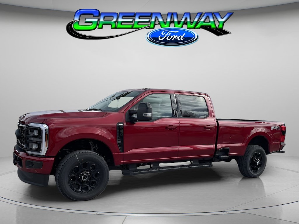 Take command of our 2026 Ford F-350 Lariat Crew Cab 4X4 and conquer the tough jobs in Ruby Red Metallic Tinted Clearcoat! Powered by a 7.3 Liter V8 serving up 430hp to a 10 Speed Automatic transmission with driver-selectable performance modes. This Four Wheel Drive truck complements that muscle with a rugged suspension for an easy ride. Equipped for dealing with the daily grind, our bold Ford F-350 boasts LED lighting, fog lamps, PowerScope trailer mirrors with built-in spotlights, chrome bumpers, a power-lock/remote-release tailgate, and alloy wheels.