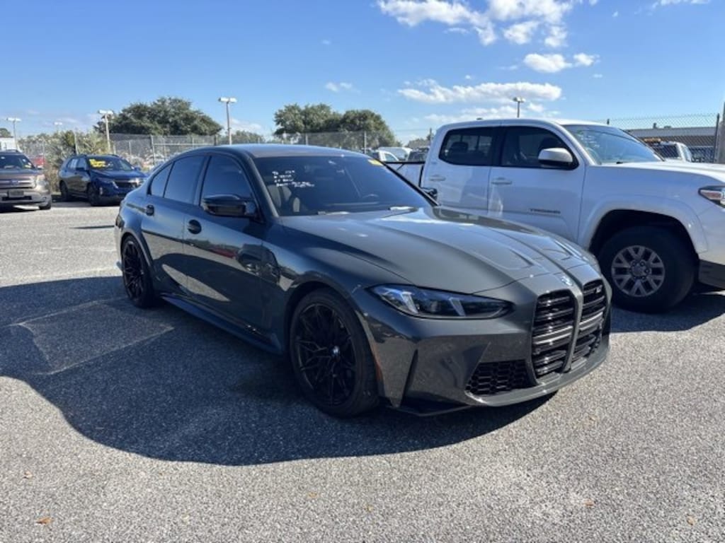 ***Apple Car Play***Android Auto***, **Back-Up Camera**, **Blind Spot Monitoring**, **Dual Zone Climate Control**, **Forward Collision Warning**, **Lane-Keeping Assistance**, **Leather**, **Push Button Start**, **Reverse Parking Assistance**, **Voice Controls**, 16 Speakers, All Wheel Drive, Alloys, Auto.Trans, Bluetooth, BMW Curved Display w/HUD, Carbon Fiber Trim, Connected Package Pro, ConnectedDrive Services, Cruise Control, Delay-off headlights, Executive Package, Extended Merino Leather Upholstery, Front anti-roll bar, Front dual zone A/C, Front Ventilated Seats, Full LED Headlights w/Cornering Lights, Fully automatic headlights, harman/kardon Surround Sound System, Heated Front Seats, Heated Steering Wheel, Knee airbag, Low tire pressure warning, Lumbar Support, M Compound Brakes w/Red Calipers, M Sport Seats, Memory seat, Navigation, Occupant sensing airbag, Overhead airbag, Panic alarm, Power Driver Seat, Power Front Seats, Power Tailgate, Rain sensing wipers, Rear anti-roll bar, Remote Engine Start, Remote Keyless Entry, Satellite Radio, Security system, Sedan, SiriusXM w/360L & 1 Year Platinum Plan Subscription, Steering wheel mounted audio controls, Telescopic Steering Column, This BMW M3 is well equipped and includes the following key features, Tilt Steering, Traction Control, USB Port, Wheels: 19"x9.5" Fr. & 20"x10.5" Rr M Black. CARFAX One-Owner. Clean CARFAX.