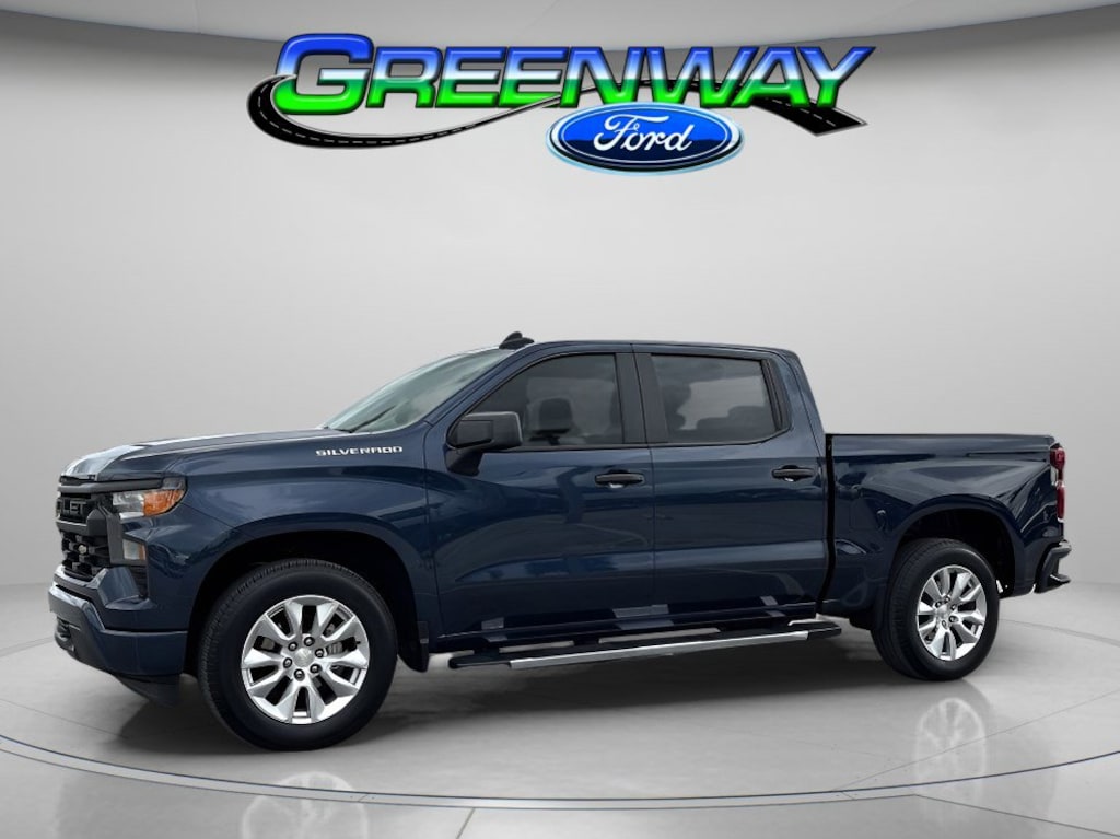 Northsky Blue Metallic 2022 Chevrolet Silverado 1500 Custom 4D Crew Cab RWD 2.7L Turbo 19/22 City/Highway MPG