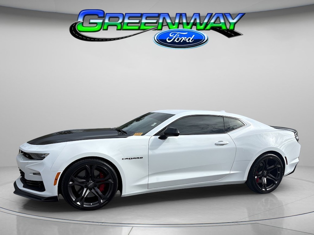 **Back-Up Camera**, **Blind Spot Monitoring**, **Push Button Start**, **Rear View Camera**, 4-Wheel Disc Brakes, 6 Speakers, 6-Speaker Audio System Feature, 6-Way Power Front Passenger Seat Adjuster, 8-Way Power Driver Seat Adjuster, ABS brakes, Air Conditioning, Alloys, Auto.Trans, Automatic temperature control, Battery Protection Package (LPO), Bluetooth, Bluetooth® For Phone, Brake assist, Bumpers: body-color, Coupe, Cruise Control, Delay-off headlights, Dual front impact airbags, Dual front side impact airbags, Dual Mode Exhaust, Electronic Stability Control, Exterior Parking Camera Rear, Four wheel independent suspension, Front anti-roll bar, Fully automatic headlights, Keyless Entry, Knee airbag, Low tire pressure warning, Occupant sensing airbag, Overhead airbag, Panic alarm, Power driver seat, Power Driver Seat, Power steering, Power windows, Premium audio system: Chevrolet Infotainment System, Radio data system, Radio: Chevrolet Infotainment 3 Plus System, Rear anti-roll bar, Rear window defroster, Remote keyless entry, Remote Keyless Entry, Remote Vehicle Starter System, Satellite Radio, Security system, SiriusXM w/360L, Speed control, Speed-sensing steering, Steering wheel mounted audio controls, Sueded Flat-Bottom 3-Spoke Steering Wheel, Sueded Microfiber-Wrapped Shift Knob, Telescopic Steering Column, This Chevrolet Camaro is well equipped and includes the following key features, Tilt Steering, Traction control, Traction Control. Clean CARFAX.
