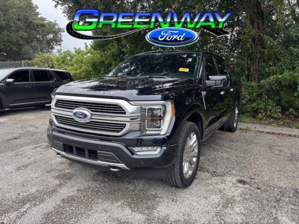 Blue 2021 Ford F-150 Limited 4D SuperCrew 4WD 3.5L PowerBoost Full-Hybrid V6 24/24 City/Highway MPG