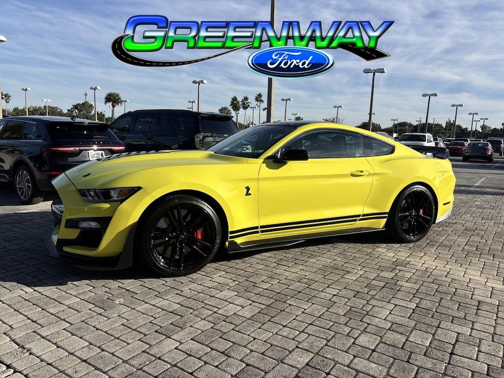 Yellow 2021 Ford Mustang Shelby GT500 2D Coupe RWD 5.2L V8 12/18 City/Highway MPG