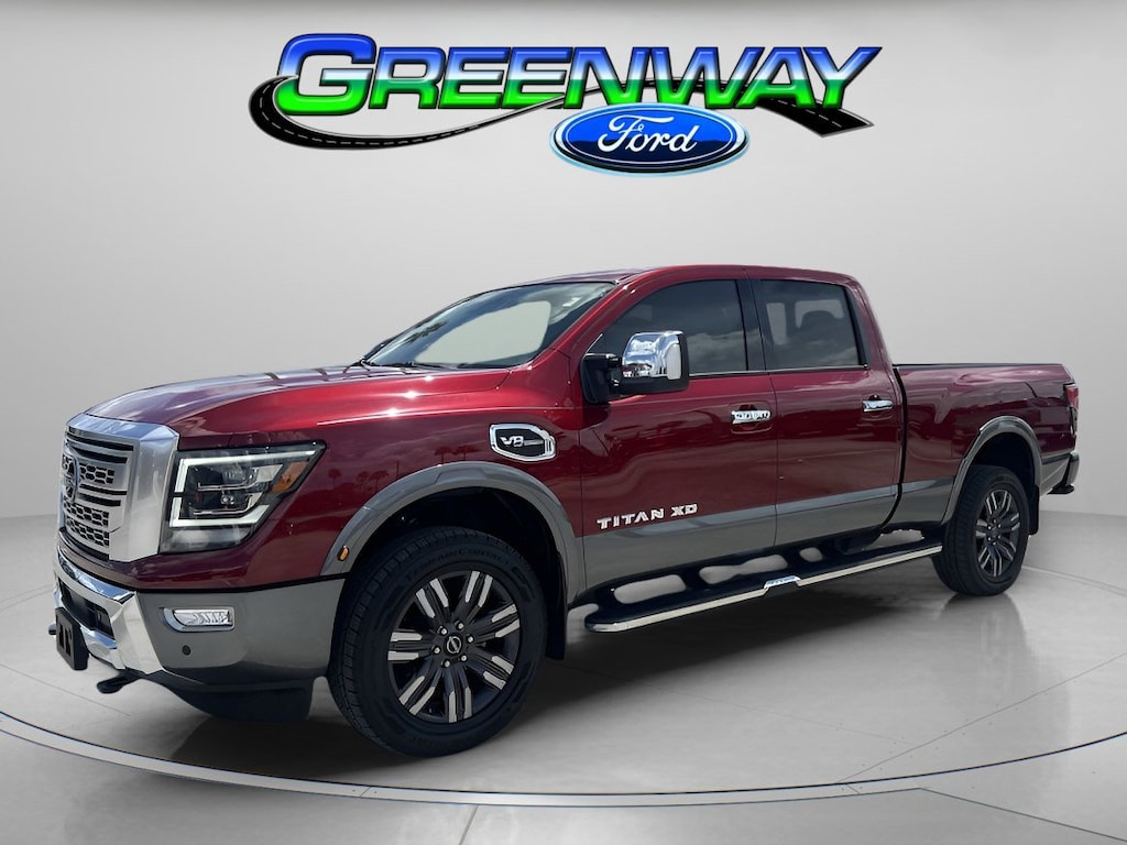 Cardinal Red Metallic 2023 Nissan Titan XD Platinum Reserve 4D Crew Cab 4WD 5.6L V8 DOHC 32V Federal 400hp